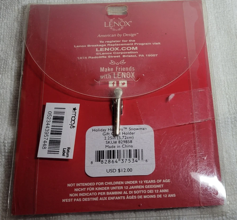 HomeLENOX Gift Card Holder SnowMan American by Design brand new non-smoking home