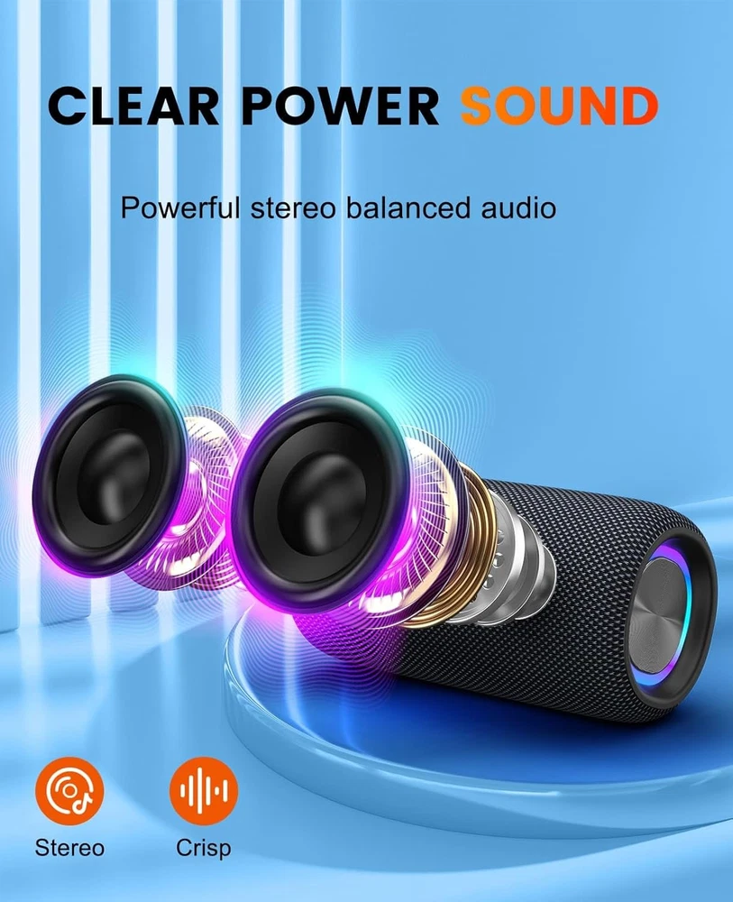 Store New Arrivals Add to Favorite View Feedback Contact LENRUE Bluetooth Speaker, Wireless Portable Speaker with Crisp Sound, Dynamic Lights, IPX5 Waterproof, TWS Pairing, Type C Charge, Suitable for Indoors, Outdoors, Parties, Gifts Description Item model number F22 Number of Items 1 Power Source Battery Powered Control Method Touch Vehicle Service Type Phones, Tablets Bluetooth Range 33 Feet Controller Type Button Speaker Size 3.5 Inches Wireless Communication Technology Bluetooth Number of Power Levels 1 Brand LENRUE Material Plastic Includes MP3 player? No Number of Microphones 1 Package Type [FFP] Model Name F22 Recommended Uses For Product For Music, Video, Indoor, Outdoor Specific Uses For Product Indoor parties, Outdoor parties, Poolside parties, Beach activities, Camping, Hiking, Picnics, General music and video playback Included Components 1 × Instructions, 1 × Bluetooth Speaker, 1 × USB C Charging Cable Total Ethernet Ports 1 Subwoofer Connectivity Technology Wireless Speaker Maximum Output Power 10 Watts Water Resistance Level Waterproof Connectivity Protocol Bluetooth Item Weight 1.43 pounds Connectivity Technology Bluetooth, USB, TF Cards Special Feature Waterproof, Stereo Pairing, Colorful Lights Color BlackGray Compatible Devices Smartphone, Tablet, Laptop Speaker Type Surround Sound Is Waterproof True Audio Output Mode Surround Manufacturer LENRUE Product Dimensions 3.5"D x 3.5"W x 6.7"H 【Powerful and Double Stereo】 The bluetooth speaker with double wireless stereo feature, Produces Impressive sound with clear, loud, and distortion free. Perfect for both indoor and outdoor use. 【Fun Light Effects】 The wireless speaker create a vibrant and dynamic ambiance, dancing to the music, making it a great choice for parties or simply adding some flair to your music. 【IPX5 Waterproof and Tough】 Bluetooth speaker is dustproof and waterproof, sturdy and durable. An ideal choice for showering, poolside parties, beach, camping, hiking, and more. 【Compact and Portable】 The portability size making it easy to take on the go. Become your go-to speaker for picnics and outdoor gatherings. 【Stable Connection】 The speaker connect bluetooth quickly and stays connected without any drop-offs. Adds TF slot, USB port, provide multiple connection ways. Product Description Immersive and Crisp Sound: Engineered 2 drives and 2 diaphragms, get passionate and surging voice without noise! Double Wireless Stereo: Easy to pair two portable Bluetooth speakers achieve true dual enhanced stereo sound. Bringing a Shocking Party Experience! Vibrant Light Effects: Double dynamic multi-color light shows, syncs to the beat of the music. excitement to your party! Durable and Waterproof: Bluetooth speaker designs durable shell and waterproof. Portable for showering, camping, hiking, pool, beach and more. TWS Stereo Surround Sound 1. Turn on two F22 speakers. 2. Disconnect all devices with F22. 3. Double click the power button on the one of speakers into TWS pairing mode. 4. TWS pairing will auto finish after "beep". 5. Click the device name" F22 "to pair on. F22 Blurtooth Speaker Specification Pair Name F22 Connection Ways BLuetooth 5.3, USB, TF Cards Charging Interface USB C Charging Port Light Modes 4 Dynamic Lights Light Switch Short Press the M button TWS Connection Double click the power button to connect/disconnect ABOUT US We offer the best prices around on high quality products. Our E-store includes media such as books, movies, music and games while offering electronics, toys, sporting apparel, clothing, tools, general home, garden items and more. SHIPPING We are always working hard to ensure your package arrives as soon as possible. Please understand that some factors like weather, high postal traffic, and the performance of shipping companies are outside of our control. We offer free shipping to the lower 48 states and ship within 2 business days of payment, usually sooner. We do not accept P.O. Boxes. Please provide a physical address. RETURNS We offer a 30-Day Return Policy on items which you are not completely satisfied with. You have the option for a full-refund or an exchange of the item. No returns are available on items shipped outside of the USA. PAYMENT We accept PayPal. CONTACT US This page content is yet to come Please ad us to your favorite seller and visit again later Thank You CUSTOMER SATISFACTION We try our very best to make sure every customer is completely satisfied. If there's a problem, message us! We're happy to help.