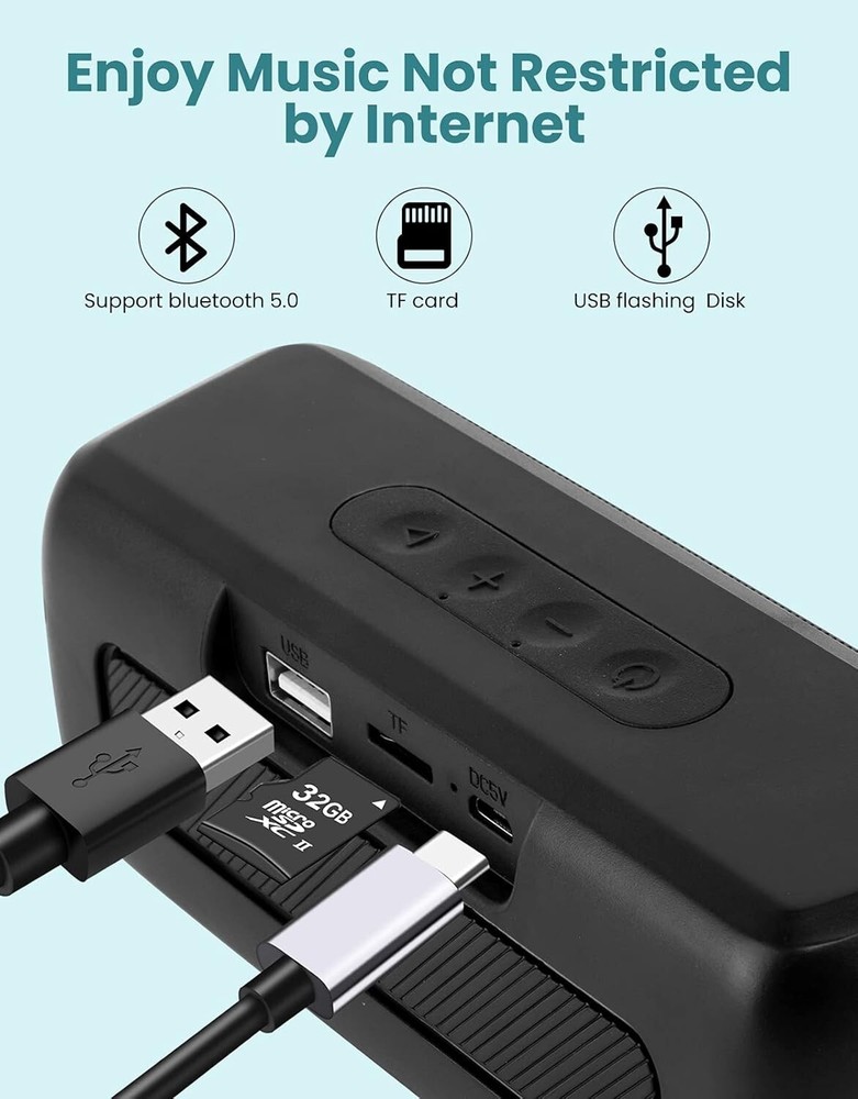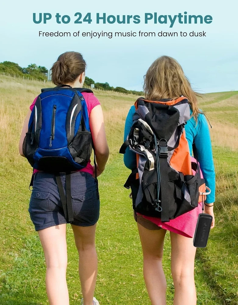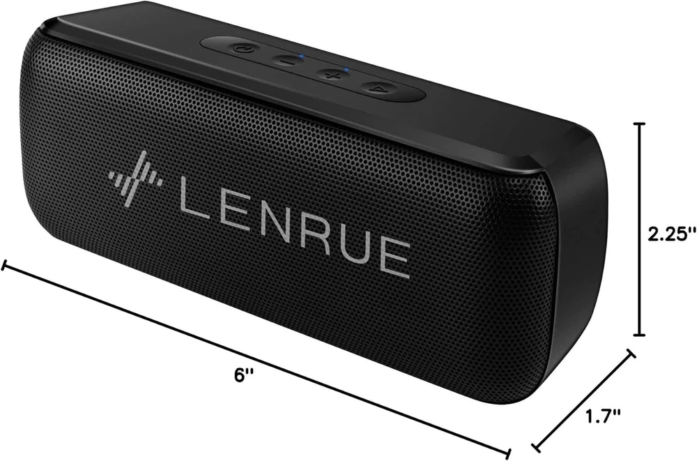 【HIFI Clear Sound 】LENRUE Bluetooth Speaker "Soundmate" with high performance loudspeaker and enhanced bass Diaphragm to provide Clear Sound and bass. 【12H-24H Long Playtime】Up to 16H-24H hours playtime.A full charge, you can enjoy morning music for a week ,or from dawn to dark when for pininc or travel outdoors.The playtime is refer to the volume and the audio type. 【Multiple Playback Modes】Bluetooth 5.0 technology support most device ,such as your iPhone, Samsung,Andriod cellphone.Also support the USB flash-Disk, micro SD card (32GB) playback ,too.(Not support 3.5mm aux-input and No 3.5mm AUX Line in the package) 【Support Handfree Call】 Built-in good quality microphone,pairing the speaker to your iPhone or Samsung by bluetooth , you can answer the call via the wireless speaker for a louder sound. 【Best Gift Choice 】The porttable speawker is Affordable gift for you or friends to enjoy favourite songs home or outdoors.