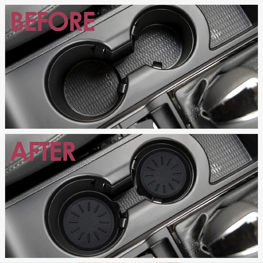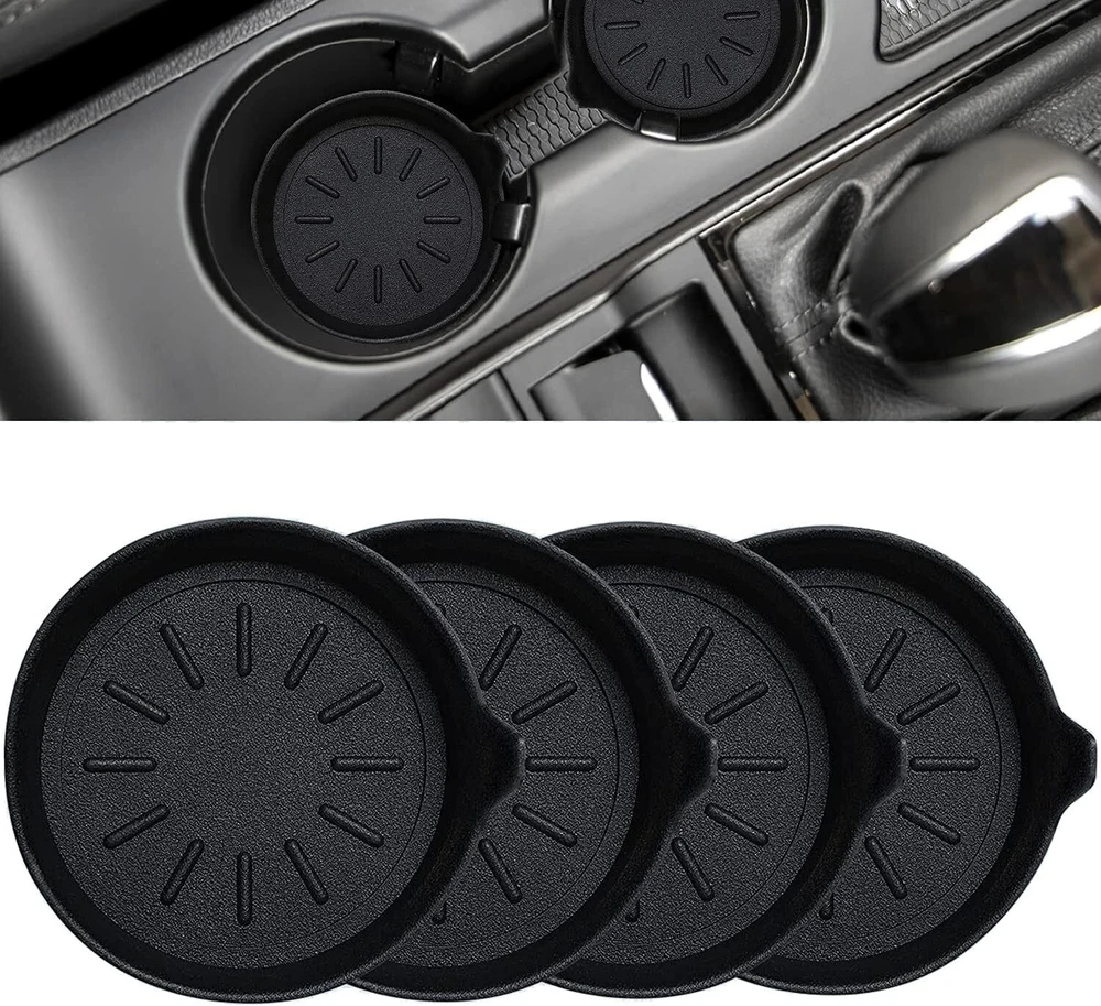 LEORAY Car Coasters for Cup Holder Silicone 4 Pack Original, Black Product Details Color: Black Material: vinyl, metal, fabric, Silicone Brand: LEORAY Shape: Round Product Care Instructions: Water Is Dishwasher Safe: Yes Product Dimensions: 3.3"L x 3.3"W Manufacturer: LEORAY Number of Items: 4 Item Weight: 2.89 ounces Country of Origin: China Item model number: CCN02 PERFECT PROTECTOR FOR CAR CUP HOLDER. Features raised lip and deep cup shape design, the coaster not only catches and holds spills, condensation, crumbs and other messes, but also keeps cans and bottles from rattling and protects your car cup holder from scratch and damage. These coasters are affordable preventable care product to keep your vehicle's cup holders clean from the goo of daily use. HIGH QUALITY ECO-FRIENDLY SILICONE. The set is made of premium eco-friendly silicone that being treated with high temperature vulcanization, it is durable, odorless, nontoxic and endures extreme outdoor temperature. They are perfect gifts, and it sometimes can work as cup coasters in office and home bar as well. DEEP CUP SHAPE & UNIVERSAL DESIGN. With the deep cup shape design, this coaster is really a perfect car decoration. The universal 3-1/8" size is designed to fit cup holders in most cars, SUVs, trucks, vans and boats. We strongly recommend measure your car holder diameter before you buy to ensure compatibility. EASY TO REMOVE AND CLEAN. Built with unique finger slot cutout for easy placement and removal, the coaster is indeed a must-have for your car, allowing you to lift them out with ease when it's time to clean. Besides, it is fully washable and super easy to clean by rinsing it under running water. All vehicles have cup holders, but not all of them have soft rubber-like removable coasters in the bottom of them to catch drips, condensation or general muck. The thing is ordinary cup holders are difficult to clean, and seem to catch all kinds of crumbs and other debris, making them disgusting. Thankfully, these coasters catch and hold all messes, allowing you to lift them out with ease when it's time to clean.