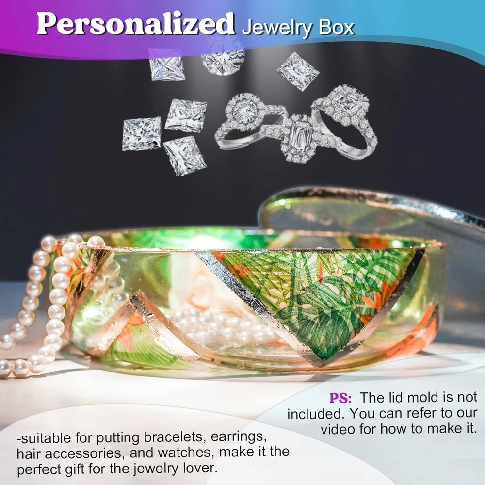 Store New Arrivals Add to Favorite View Feedback Contact LET'S RESIN Large Epoxy Molds, 8'' for Succulent Pot, round Silicone Molds for Casting Resin, Plaster, Concrete Cement, DIY Jewelry, Makeup Storage Container, Flower Plant Pots Description Item model number ELR00194 Item dimensions L x W x H 8.39 x 8.7 x 2.52 inches Color Round Succulent Pot Mold Brand LET'S RESIN Material Silicone Country of Origin China Item Weight 15.2 ounces Shape Round Number of Pieces 1 Product Dimensions 8.39 x 8.7 x 2.52 inches Manufacturer LET'S RESIN 【Designed by LET'S RESIN】: Inspired by the planter pots, let's resin designed these large resin molds for DIY storage container, the dimensions measure 8inch x 8inch x 3inch, and requires 14.2 oz of epoxy resin to fill the whole resin molds; It’s very practical and able to store various items, keep your place tidy and organized, make it the perfect gift for your family members, friends, and beloved ones on many occasions. 【Multifunctional Storage Container 】: There are so many DIY possibilities for these silicone resin molds, it is not only be used to make succulent planter bowls but also be used as a multifunctional storage box, store eyeshadows, concealers, powders, nail polish, lotions, perfumes, brushes as well as daily office supplies, small life items, giving everything a fixed position will also help you to find them easily, making this a beautiful addition to your desktop. 【Excellent Product Quality】 Our silicone molds for resin are crafted from premium silicone which is flexible & not easily deformed, washable & easy to clean, easy to use & de-mold, reusable & durable. They have glossy interiors which ensure the finished products have a glossy and smooth surface without polishing. Durable epoxy resin molds easily help you make various styles of resin boxes. 【Strong Compatibility】:These large resin silicone molds are compatible with many casting materials, especially good for epoxy resin, and casting resin, but not for coating resin, and compatible with the following casting materials such as gypsum, wax, soap, polymer clay, gypsum, etc. 【Why Choose LET'S RESIN】: Whether you are a novice or an experienced resin artist, you can get all kinds of DIY inspiration from LET'S RESIN. We attach great importance to the consumer experience and will continue to update and optimize our resin box molds. If you encounter any problems when using our resin casting molds, please feel free to contact us at any time. LET'S RESIN strives to offer you 100% satisfaction.. Product Description LET'S RESIN 8'' Round Large Epoxy Resin Molds for DIY Storage Container Box 8 inch Diameter Resin Molds dimensions measure 8 x 8 x 3inch, and requires 14.2 oz of epoxy resin to fill the whole resin molds; very practical and able to store various items Flexible Silicone Soft silicone material with excellent elasticity, can withstand temperature from minus 40 to 446 degrees Fahrenheit. Easy Demolding LET'S RESIN silcione moldsare very flexible and durable and easy to release the finished product Glossy and Shiny LET'S RESIN Epoxy Resin Molds has a mirror-like smooth surface, no need to sanding and polish. LET'S RESIN 8'' Round Silicone Resin Molds In this video, we will show you how to make a custom resin jewelry box. The video showcases the product in use. The video guides you through product setup. The video compares multiple products. The video shows the product being unpacked. -Suitable for putting bracelets, earrings, watches, make it the perfect gift for the jewelry lover. -Let you quickly find what you need, great for room & office as a stylish way of staying organized. -Maintain a warm, lived-in sense in your indoor or outdoor living area. 1 Personalized Jewelry Box 2 Multipurpose Storage Box 3 Decorative Planter How much epoxy resin is needed to fill the resin molds? It needs approx 14.2oz of epoxy resin How to avoid resin molds tearing up? 1.Please use casting resin only, not use coating resin 2.Please avoid using torch/heat gun directly on the resin molds 3.Demold the item after the resin is fully cured. How to remove bubbles ? 1.Choose the slow-cure resin 2.Cast resin in a warm room; warm your resin before casting. 3.Stir your resin mixture slowly; pour the resin in thin layers 4.Fill a spray bottle with rubbing alcohol and spritz the surface of the resin. How to de-mold easily? 1.Use mold release to keep the resin from sticking to molds and it is great for prolonging the life of molds as well. 2. After your resin pieces are completely cured, pour some soapy water into the mold. How to clean and store resin molds? 1.When finished with your silicone molds, wash it with warm water and mild soap. 2. Use a soft cloth to wipe clean. 3.Store your silicone molds in a single, flat layer. 4.Molds are best kept in a cool, dry area and out of direct sunlight. More Exquisite Molds Options Add to Cart Add to Cart Add to Cart Add to Cart Add to Cart Customer Reviews 4.7 out of 5 stars 3,098 4.6 out of 5 stars 2,727 4.7 out of 5 stars 2,135 4.3 out of 5 stars 1,031 4.4 out of 5 stars 560 Price $7.99 $ 7 . 99 $22.99 $ 22 . 99 $14.39 $ 14 . 39 $23.99 $ 23 . 99 $19.99 $ 19 . 99 Material Sturdy Silicone Sturdy Silicone Sturdy Silicone Sturdy Silicone Sturdy Silicone Surface Smooth Interior Smooth Interior Mirror Like Surface Mirror Like Surface Mirror Like Surface Easy to Demold ✔ ✔ ✔ ✔ ✔ Not Easy to Deform ✔ ✔ ✔ ✔ ✔ Easy to Clean ✔ ✔ ✔ ✔ ✔ ABOUT US We offer the best prices around on high quality products. Our E-store includes media such as books, movies, music and games while offering electronics, toys, sporting apparel, clothing, tools, general home, garden items and more. SHIPPING We are always working hard to ensure your package arrives as soon as possible. Please understand that some factors like weather, high postal traffic, and the performance of shipping companies are outside of our control. We offer free shipping to the lower 48 state