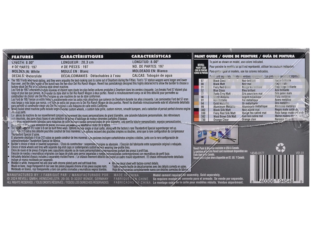 Assembly Status: Unassembled Kit Subject: Ford Scale: 1/25 Type: Model Kit Skill Level: 5 – Expert Year Manufactured: 2024 Features: Not Painted Theme: Transportation Set Includes: Car Recommended Age Range: 13+ Model: Del Rio Ranch Wagon gtin13: 840306945489 UPC: 840306945489 MPN: 14548 Brand: Revell Material: Plastic