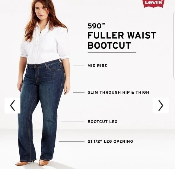 * LEVI'S 590 BOOT CUT WOMEN'S JEANS PLUS SIZE: 18 BRAND: LEVI'S STYLE: 590 SIZE: 18 WAIST: 40" relaxed - 42" stretched RISE: 10.5" INSEAM: 32" It is the perfect addition to your wardrobe Super comfy with stretch GDB