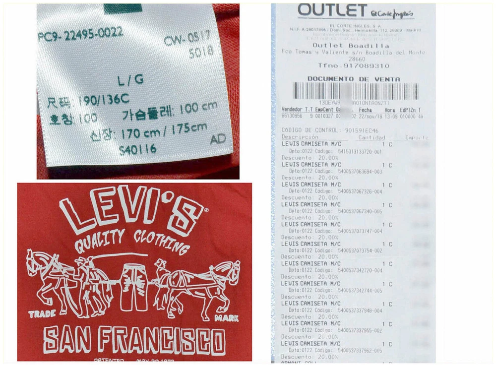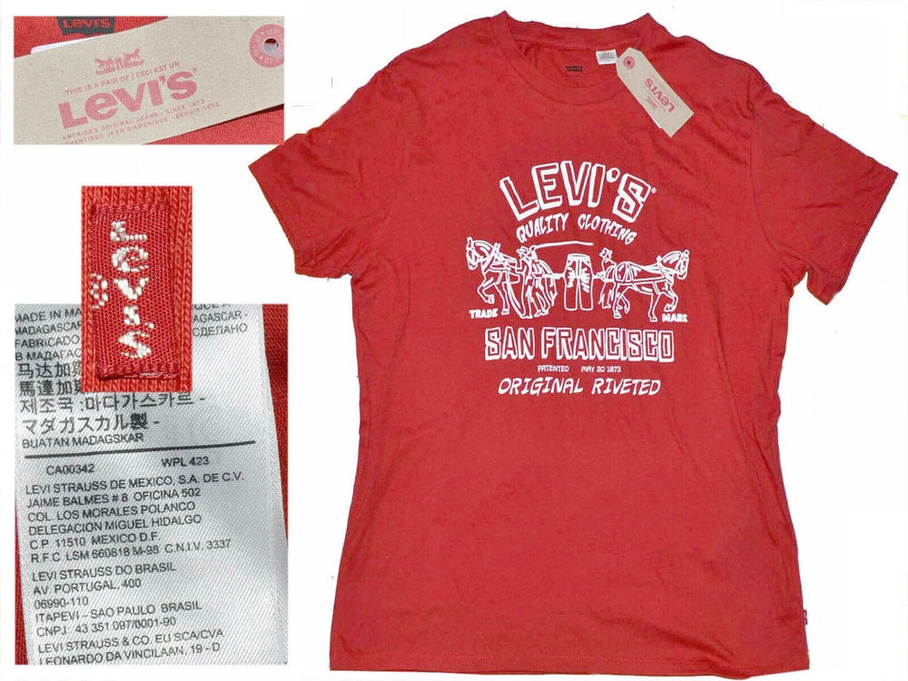 LEVI´S Gender: Man Composition: 100% cotton Features: LEVI'S external logo.Proceeds directly from the main distributor of the Levis brand from which you can see the invoice Size : S (A) shoulder to shoulder 43 cm, (B) armpit-armpit 48 cm, (C) total length 61 cm Thank you for your support purchased only from stores that sell original items like us* *In our photographs you can clearly see all the details that identify an original article, if you do not see them in other stores, distrust them.In our shop only items from the shop of the brand or distributors authorized by the brand. If you wish we can indicate the exact origin of each item with invoice of origin. Selling or buying counterfeits is a crime. Absolute warranty of authenticity and lowest price Absolute guarantee of authenticity and lowest price An absolute guarantee of authenticity and the highest price Absolute Warranty for performance and low price Assoluta guarantee of authenticity and basic price