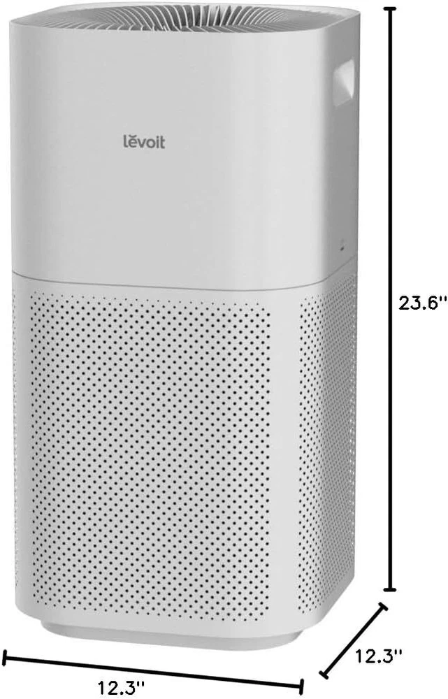 LEVOIT Air Purifiers for Home Large Room Up to 3175 Sq. Ft with Smart White Product Details Color: White Brand: LEVOIT Product Dimensions: 12.3"D x 12.3"W x 23.6"H Floor Area: 3175 Square Feet Specification Met: Energy Star Certified, FCC Certified, CARB Certified Noise Level: 26 dB Particle Retention Size: 0.3 Micron Wattage: 49 watts UPC: 810043375214 Global Trade Identification Number: 00810043375214 Manufacturer: LEVOIT Item Weight: 13.7 pounds Item model number: LAP-C601S-WUS Care instructions: Hand Wash Assembly required: No Number of pieces: 1 Batteries required: No Included Components: 1 × Smart Air Purifier 1 × 3-in-1 Original Filter (Pre-Installed) 1 × User Manual 1 × Quick Start Guide Power SourceItem Weight: DC13.7 Pounds Control MethodFilter Type: Voice3-In-1 Filtration ' : A juggernaut at purifying your air in any room. It scans the tiny contaminants and uses enhanced technology to keep your air cleaner than ever, an easy solution for whole house purification.Operating Conditions Temperature : 14°–104°F / -10°–40° C - : VortexAir Technology 3.0 enables the Core 600S-P to improve indoor air circulation and purify 635 ft² in 12 minutes or up to 3,175 ft² spaces in 60 minutes (CADR: 410 CFM / 697 m³/h). It’s great for open floor plans and high-ceiling houses -- : 3-stage filtration, including an Efficient Middle Filter, captures at least 99.97% of airborne particles 0.3 microns in size : When in Auto Mode, the Core 600S-P will automatically adjust the fan speed to protect your air quality while you rest. Levoit Original Filter is HEPA-grade while operating in Sleep Mode, as tested by an independent lab , : QuietKEAP Technology provides maximum filtration with minimal noise levels as low as 26dB to maximum 55dB. The Light Sensor turns off display lights when it detects darkness, so you can always sleep soundly : Levoit’s exclusive AirSight Plus Technology is twice as accurate as an infrared laser, detecting particles down to 0.3 microns in size. Turn on Auto Mode and the air purifier will automatically adjust the fan speed setting for you and update the display to keep you informed , : The maximum power of this air purifier is only 49W—much lower than other wide-coverage air purifiers. : At Levoit, we make your family’s health and safety our top priority. The Core 600S-P is ETL listed, as well as FCC, CARB, and Energy Star certified : Only use genuine Levoit replacement parts to maintain the best performance (Search LRF-C601-WUS). Off-brand filters are inconsistent, unreliable, and may damage the air purifier as 0.3um, this air purifier focuses on real-time home conditions - this is more than just having an air purifier! Levoit engineers designed the airpurifier's exclusive light sensor to detect the amount of light in the room toautomatically adjust air purifier settings - Set it & Forget it.Features:√ Designed for Ultra-Large Room- VortexAir Technology 3.0 enables the Core 600S to change the air in a 1588 ft² room 2x per hour√ Our air purifiers are scientifically proven to capture particles as small as 0.3 microns including pollen, dust and more. Efficient Middle filters last 3-5 months longer than standard filters.√ Equipped with a Laser Smart Sensor that detects airborne particles and self-adjusts to address the challenges of your ever-changing environment√ Built to run continuously, the AUTO mode is controlled by the Smart Sensors which detect the pollutant in the air and will automatically speed the fan up or down and change the air quality light indicator.√ Turn on Light Detection in the FREE VeSync app-the Light Seonsor will automatically adjust air purifier settings based on the amount of light in the room.√ Program your machine to turn off after pre-set intervals between 1 -12 hours.√ Safe and easy to clean with low maintenance, easy-to-replace filters. With built-in notifications when they require replacing.√ Using compatible voice control services, control your air purifier with simple, spoken instructions. Works with Alexa and Googlevoice Assistant.Warning – unauthorized replacement filters are not tested. Only authentic Levoit filters are recommendedto ensure a sealed system and proper functioning of the machine. The officialLevoit Core 600Sreplacement filter can be found by searching "###" in the search bar.Notes:We are committed to bringing customers high-quality products, a healthier lifestyle, and perfect after-sale services. Your satisfaction with our products is the priority of the team, so feel free to contact us anytime when you have questions. Our products are sold and fulfilled by Seller. If you find the product damaged or used when you receive it, please don't hesitate to contact Seller Support or us! Our customer service will respond within 24 hours.