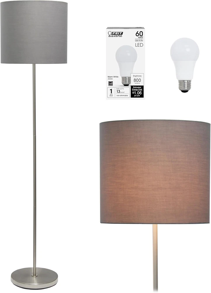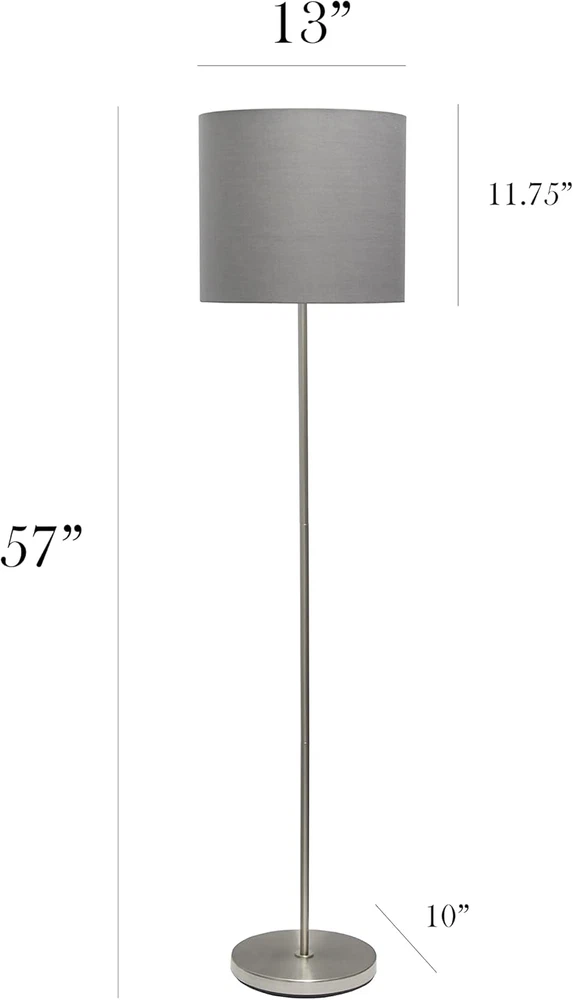 Light Source Type: LED Connectivity Technology: Normal bulb Brand: Does not apply Special Features: Energy Efficient Country of Origin: China Connectivity Protocol: Other Item Weight: 11.13 pounds Lamp Type: Floor Lamp Bulb Base: E26 Medium Item Package Quantity: 1 Shade Color: grey Room Type: Office, Bedroom, Living Room Product Dimensions: 13"D x 13"W x 57"H Switch Type: Foot Warranty Description: 1 year limited. Batteries Required?: No Base Material: Metal Power Source: Corded Electric Style: Contemporary gtin13: 313091513596 Wattage: 60 watts Item model number: LF2004-GRY-LB Water Resistance Level: Not Water Resistant Shade Material: Linen Size: Bulb Included Color: Gray Mounting Type: Floor Mount Type: Does not apply Pattern: Solid Material: Metal Is Waterproof: False UPC: 313091513596 Finish: Brushed Number of Items: 1 Finish Type: Brushed Included Components: Bulb Part Number: LF2004-GRY-LB Special Feature: Energy Efficient Age Range (Description): Adult