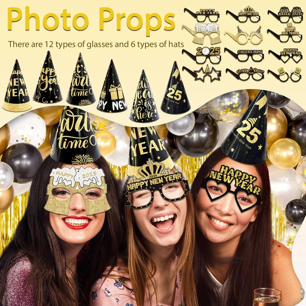 LFSTGN 77 PcsNew Years Decorations 2025, New Years Eve Party Supplies - "HAPPY BEW YEAR" Banner, "2025" Foil Balloon, Paper Glasses, hats, Balloon Party Kit, YTassel Garland, Fringe Curtain [ALL-IN-ONE] - Our 77pcs new years eve party supplies kit includes 3 x fringe curtains, 1 x "HAPPY BEW YEAR" banner, 1 x "2025" foil balloons, 6 x New Year hat, 12 x New Year glasses, 1 x variety of balloon party kits(23 Pcs), 1 x tassel garland, 2 x ribbon, 1 x glue dot, which enough to meet in your various new years decorations 2025 needs [Happy New Year] - This new years eve party supplies is suitable for indoor or outdoor party decoration. With many different but cute new year decoration elements such as balloons, banner, tassel garland, new year hats and glasses to add a festive atmosphere to your new year eve party. [New Years Eve Party Fun] - Add a little sparkle to your new year eve party with 12 x New Year glasses and 6 x New Year hat. Our new year glasses are each in a different pattern, which will be an absolute hit in your new year eve party [Quality] - No compromise on quality! Our new years decorations balloons are all made of high-quality materials, small odor, not easy to leak. And each package of our products must undergo strict inspection before leaving the factory [Service] - If you encounter anything you are not satisfied with, please contact us in time and we will do our best to solve it for you Shipping We offer FREE shipping on all orders! We ship within Three business days of payment, usually sooner. We use a selection of shipping services such as UPS, FedEx, USPS etc. We only ship to the lower 48 states, no APO/FPO addresses or PO Boxes allowed. Local pickups and combined shipping options are not provided at this time. Return You can return a product for up to 30 days from the date you purchased it. Any product you return must be in the same condition you received it and in the original packaging. Please keep the receipt. Payment We accept payment by any of the following methods: PayPal Please pay as soon as possible after winning an auction, as that will allow us to post your item to you sooner! Feedback Customer satisfaction is very important to us. If you have any problem with your order, please contact us and we will do our best to make you satisfied. Contact Us If you have any queries, please contact us via ebay. We usually respond within 24 hours on weekdays. Please visit our eBay store to check out other items for sale! Thank you for shopping at our store.