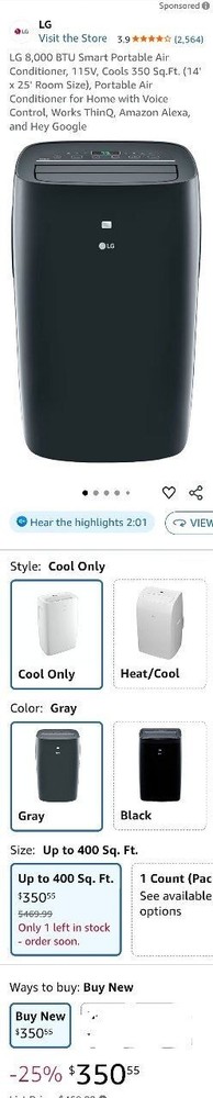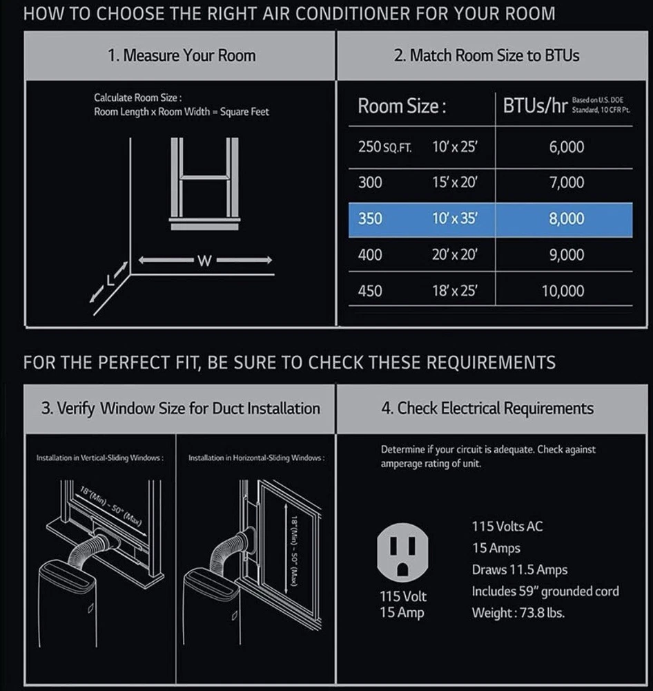 LG 8,000 BTU Smart Portable Air Conditioner, 115V, Cools 350 Sq.Ft. (14' x 25' Room Size), Portable Air Conditioner for Home with Voice Control, Works ThinQ, Amazon Alexa, and Hey Google White 555