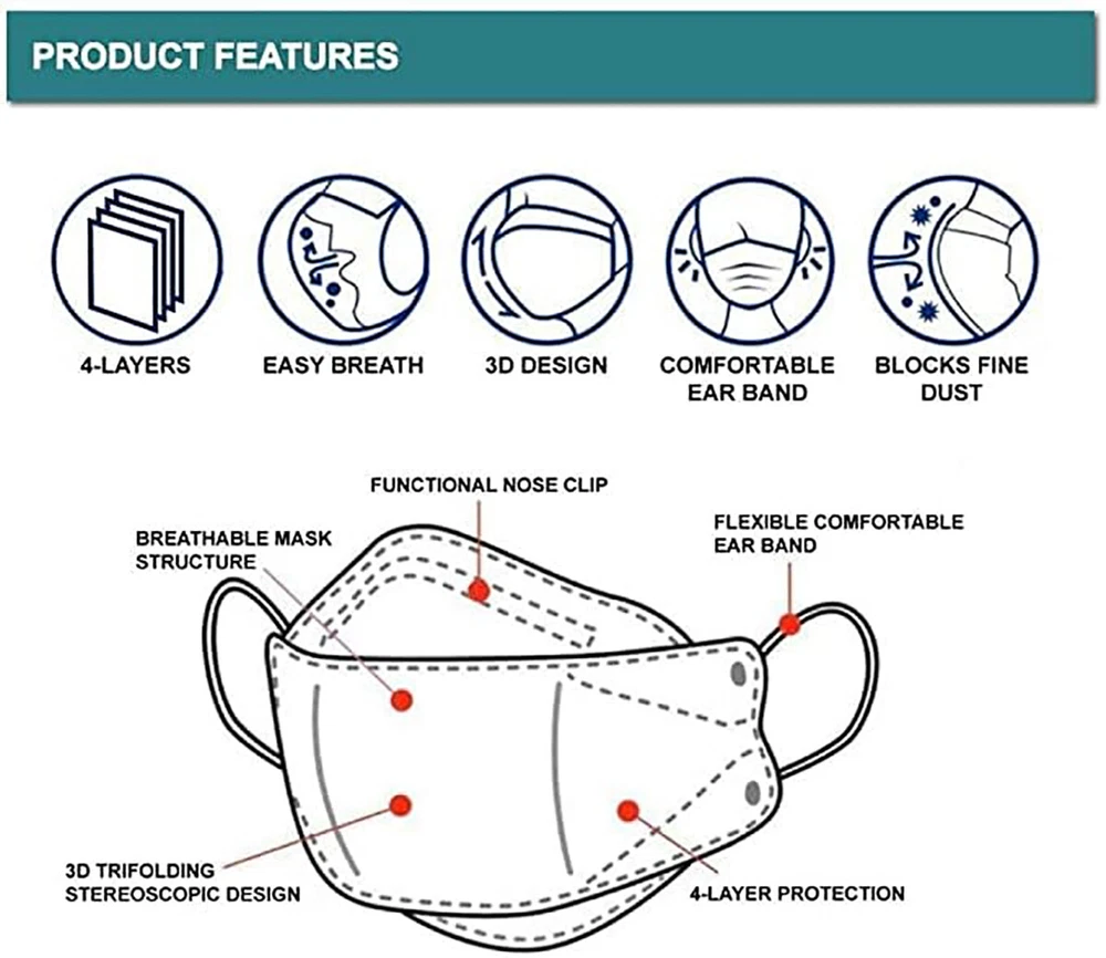 Made in Korea. Size: Large. Top Premium Quality; Perfect Face Fit with adjustable ear loop. Brand new in sealed individual packages. 1 order equals 10 individual packs; order more and save more! Korea FDA (M.F.D.S.) Certified. Reusable and disposable; do not wash for reuse; use it up to 8 total hours within a week for best protection. Korea Meltblown MB Filter. 94% protective 4-layers premium filtration. Special patented adjustable ear loops function. Soft inner layer: skin irritation compliant test completed; Graded Excellent from German Dermatest. Anti-fog on eyeglasses. Anti-slip with aluminum nose wire bridge. Ergonomic 3D Design: easy to breathe and speak; no lip touch. No returns or exchanges accepted for healthcare products. It is final sale. Same day shipping from California. We will do our best to ship out our packages as many as possible on the same day, so you can receive them earlier than expected. Most of our local orders (L.A., O.C.) will be delivered on the next day. We are a direct importer from Korean manufactures. You can trust us. We guarantee all of our items are 100% genuine, authentic, and Made in Korea. Thank you and stay safe!