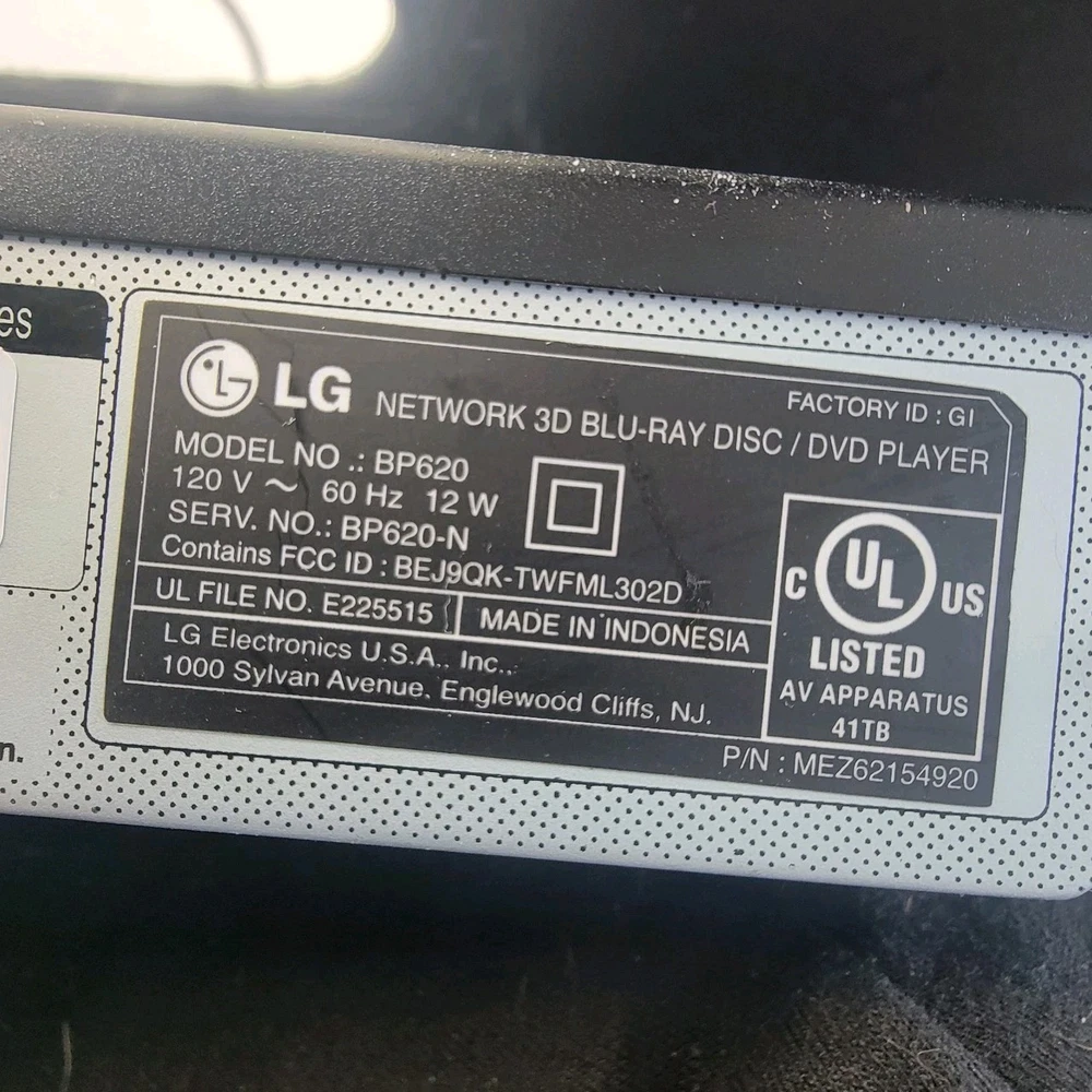 HomeLG BP620 3D Blu-ray DVD Player - HDMI - No Remote. Tested and Working.
