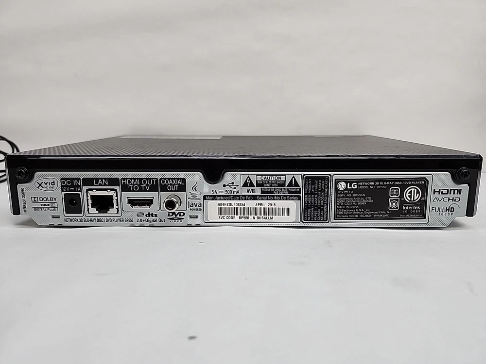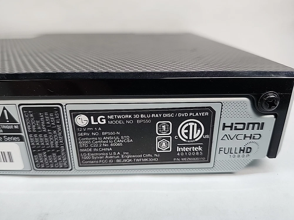 LG Blu-Ray / DVD / 3D Blu-Ray Player Model BP550 Compact Wi-Fi Streaming- TESTED Item is tested and in good working condition. Please refer to pictures for all questions regarding the condition of the item. If you do not see something in the pictures, it is most likely not included unless otherwise stated. Item is sold as is. Terms of Sale If there are any problems or comments, we look forward to hearing from you and will respond to any inquiries within 48 hours. We want you to be completely satisfied with your purchase and want to make things right! We accept returns within 30 days of delivery, however the buyer will be responsible for a 20% restocking fee. Buyer is responsible for return shipping costs! Please contact us before returning! Items are only shipped after payment is received! Be sure to double check your address when placing the order! Shipping Information We accept PayPal as it is the safest and easiest for buyers. Please pay within 48 hours of purchase. If item is not paid for after 5 days, it will be relisted. Delivery date will be according to the USPS or Fedex tracking system. We appreciate your interest! Thanks for looking and we hope you have a good day!