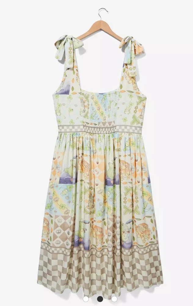 Her Universe Studio Ghibli My Neighbor Totoro Mosaic Plus Size Midi Dress Get ready for your next adventure in style with this My Neighbor Totoro-inspired dress! Featuring an allover mosaic print of Totoro, Catbus, and other characters, this dress includes tie straps and pockets, perfect for fans of the Studio Ghibli film. Listed in women's plus sizes Wash cold with like colors; dry low