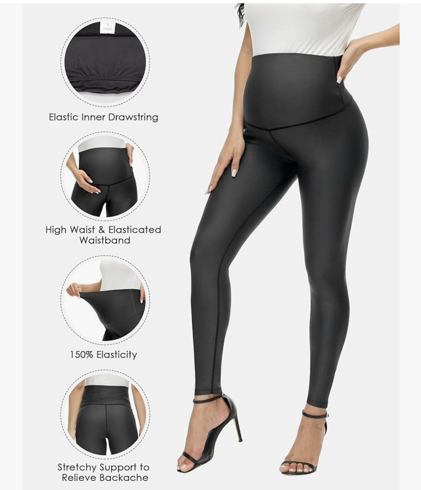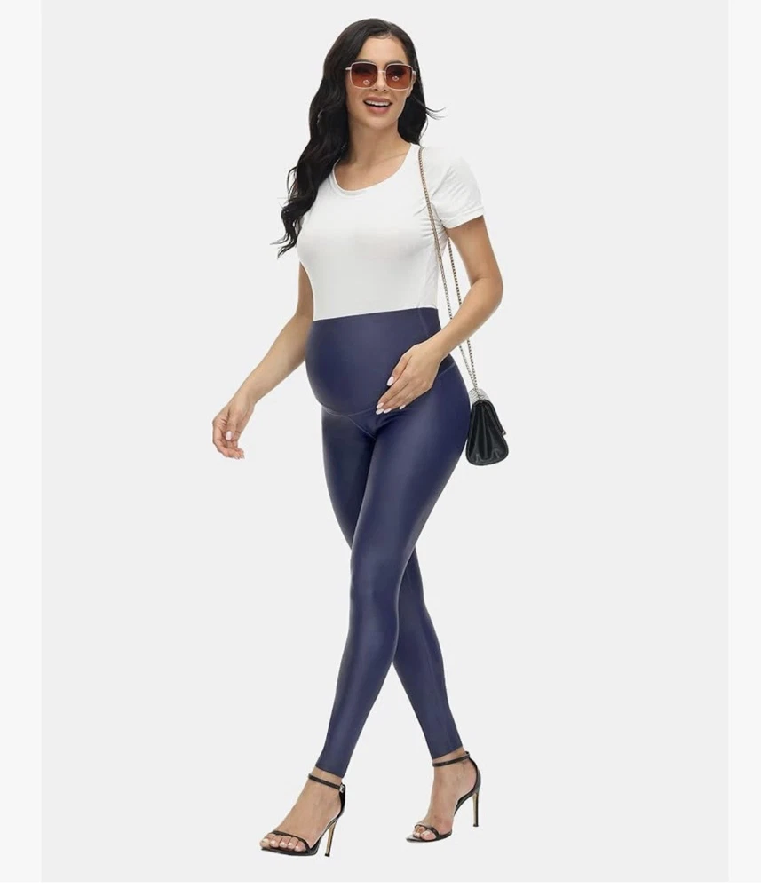 1. These maternity yoga pants are a game-changer! Super stretchy and comfortable, they fit perfectly throughout all trimesters. The high waist provides great support, and the faux leather look adds a stylish touch. Super soft fabric that stays in place without rolling down. Perfect for workouts or lounging—super versatile! Highly recommend for expecting moms who want both comfort and style.