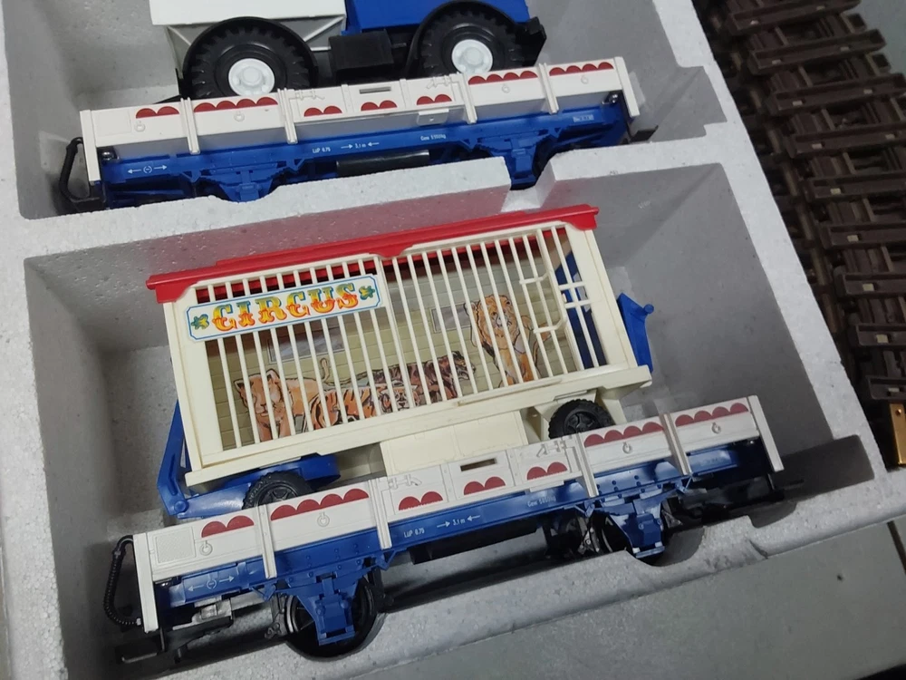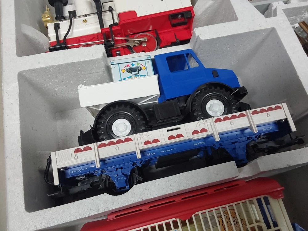 Power Type: AC Theme: Circus Control System: Analog MPN: 21988US Gauge: G Set Includes: Box Car, Flat Car, Locomotive, Track Material Grade: C-7 Excellent Age Level: 8+ Assembly Status: Ready to Go/Pre-built Brand: LGB Type: Starter Set Country/Region of Manufacture: Germany