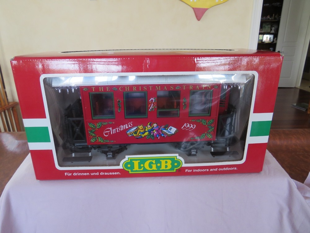 The product is a LGB Passenger Train Car in G scale, manufactured in 1999 with a Christmas theme. It features icicles on the top and comes in a special Christmas box. This toy is perfect for collectors or train enthusiasts looking to add a festive touch to their model railroads.