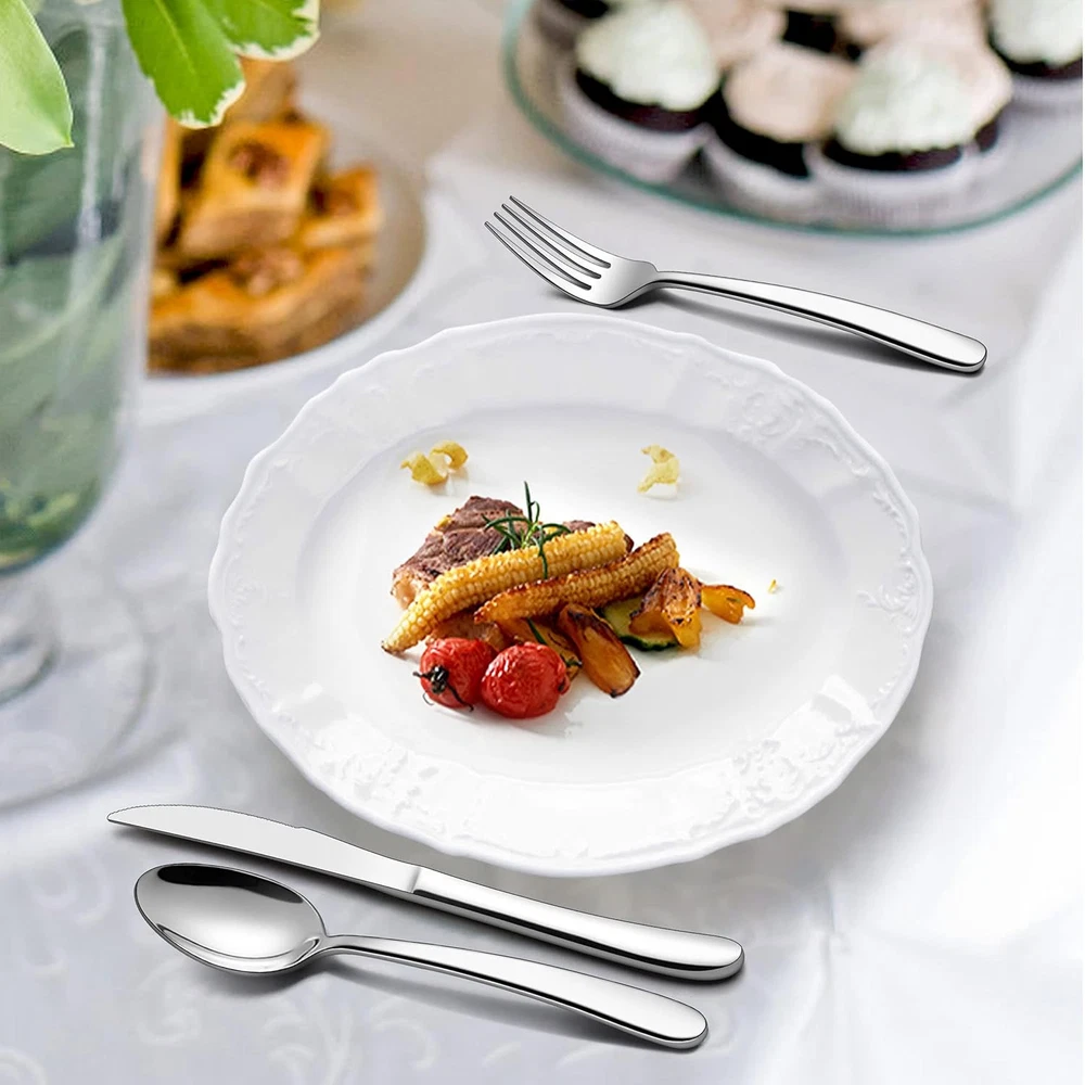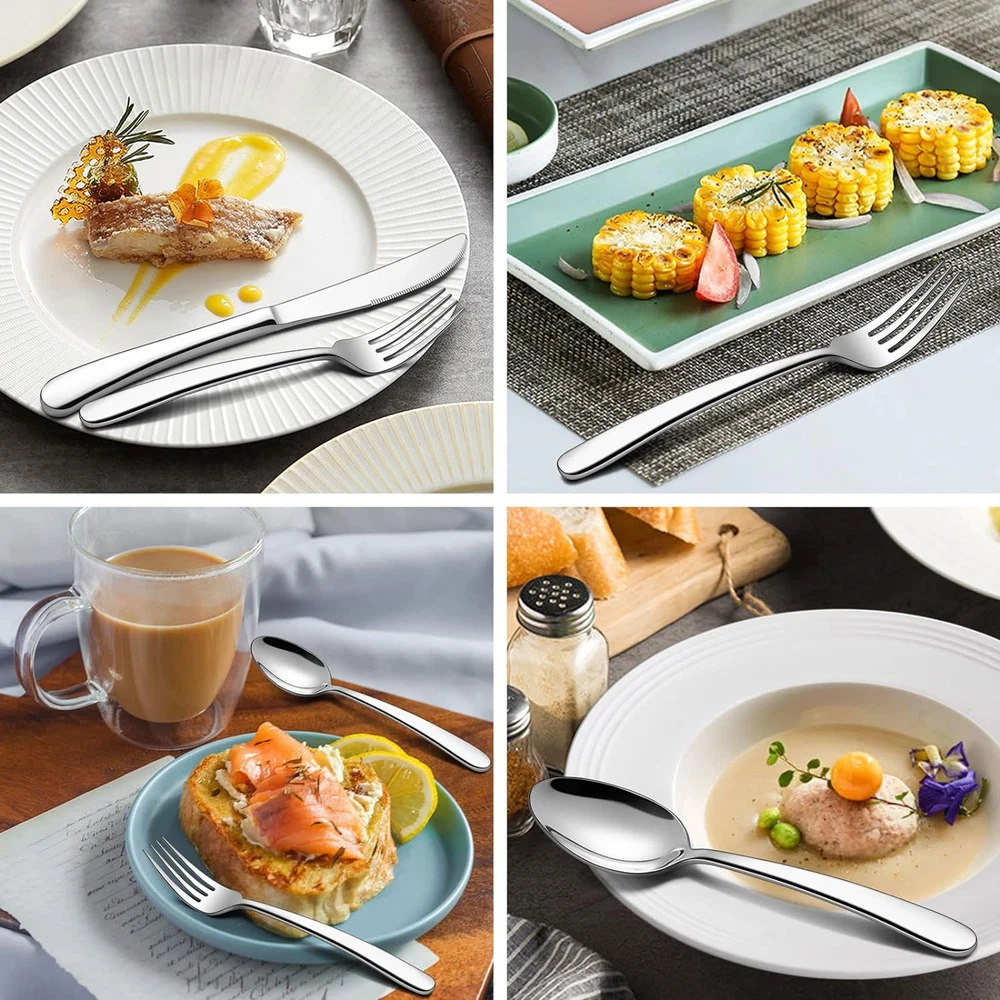 LIANYU 60-Piece Heavy Duty Silverware Set, Stainless Steel Flatware Silver Product Details Brand: LIANYU Number of Pieces: 60 Material: Stainless Steel Color: Silver Product Care Instructions: Hand Wash Only, Dishwasher Safe Recommended Uses For Product: Indoor, Outdoor Special Feature: Dishwasher Safe Finish Type: Polished Included Components: Dinner Knives, Dinner Forks, Dinner Spoons, Dessert Forks, Teaspoons Style: silverware set Is Stain Resistant: Yes Is Dishwasher Safe: Yes Manufacturer: LIANYU Package Dimensions: 10.08 x 6.61 x 3.03 inches Item Weight: 8.45 pounds Strong construction, this heavy duty cutlery set is made of thick gauge stainless steel, solid construction and durable enough for long time usage, rust resistant and without any harmful substances ensures healthy and safe Heavy duty, this 60 pieces heavy flatware set have a substantial weight to them, heavy weight but not clunky, nice heft allow you to hold comfortably, sturdy structure and absolutely not bend or flimsy, well balanced and feel great in the hand Modern silverware set, smooth lines without any redundant decoration, nice curve and great size for ease of use, simple design but fancy enough to match with your existing silverware and makes your table settings elegant and different Crafted, good mirror polished and smooth surface to make tableware set keep its gloss persistent and shiny, smooth edges without rough spots ensures safety of your lips, it is a wonderful gift for housewarming, thanksgiving, Christmas Service for 12, this 60 pieces stainless steel silverware set includes 12 of each: dinner knives, dinner forks, dinner spoons, salad dessert forks, teaspoons, perfect for home daily use, wedding, restaurant, hotel, party, entertaining This 60-Piece Heavy Duty Silverware Set, which is made out of thick gauge stainless steel, rust proof and durable. Sturdy structure and thick enough for long time use. Modern design will easily complement your tableware. It’s a good choice for setting your table.