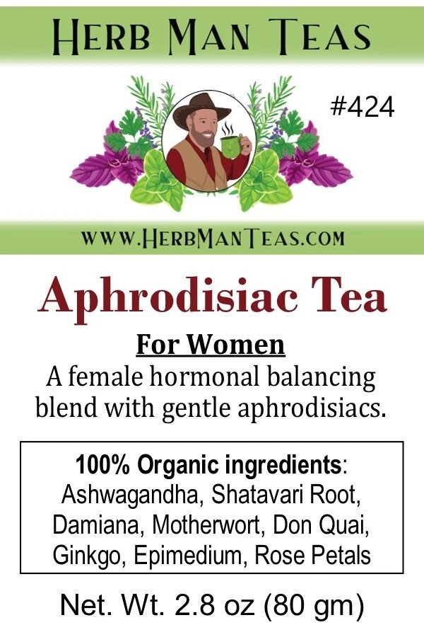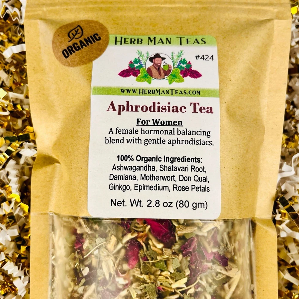 Formula by Khabir Southwick, [Registered] Integrative Ayurveda Doctor & [herbal] Pharmacist, a clinical herbalist (for 27 years) at KhabirsClinic.com Aphrodisiac Tea for Women (Previous name Sexy Woman Tea) A female hormonal balancing and libido-increasing blend with gentle aphrodisiacs for women. Drink a couple of cups a day in the daytime. Results will come in a week or two. (not stimulating like the male version) 100% Organic ingredients : Ashwagandha, Motherwort, Shatavari Root, Damiana, Don Quai, Epimedium, Gingko Leaf, Rose Petals. This product has been successfully used for years in the clinics of Khabir Southwick aka Herbman, a Registered Herbal Pharmacist and an Ayurvedic Doctor. For advanced or complex health conditions, this tea will provide relief as indicated; however, in such cases, a [Zoom or private] appointment with Khabir is recommended. For details, visit KhabirsClinic.com. What makes Herb Man Teas unique and highly effective is that they have been formulated by Khabir Southwick aka Herb Man, a world-renowned herbal pharmacist who has been in private practice for almost 30 years with health clinics in the USA. These products have been tested, refined, and used in clinical practice for decades. For details, visit: HerbManTeas.com WARNING: Anyone can put organic loose tea in a bag and make claims about it. However, knowledge of herbal pharmacology and traditional formulas is required to make a good formula A great formula requires years of feedback from patients to refine and improve. Unfortunately, most products sold online are based on the "it should work" approach from online research, not experience. We make the best teas for your health not the cheapest! "Herb Man Teas, maybe the best herbal teas on the planet! " Read the reviews: khabirsclinic.com/herbal-products-feedback2