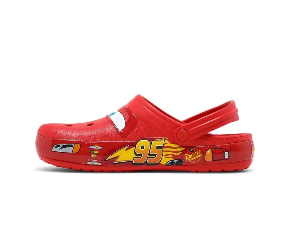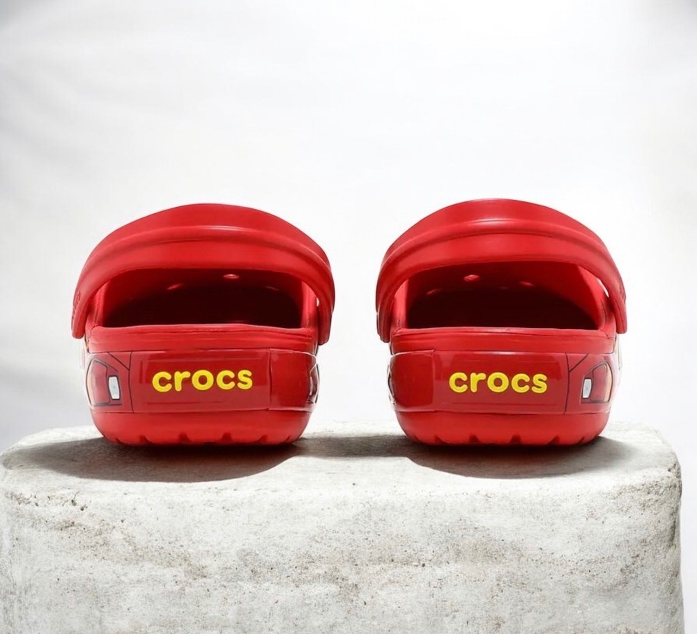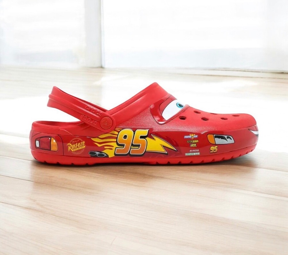 The Lightning McQueen Crocs are a limited edition slip-on sandals featuring the iconic character from the Cars movie franchise. Made of red synthetic material with rubber outsole and insole, these sandals are perfect for casual occasions in the summer, fall, or spring. The Crocs brand ensures quality and the Lightning McQueen logo adds a fun and unique touch to the design. With fast shipping available, these Crocs are a must-have for any fan of the popular animated film series note no light UP.