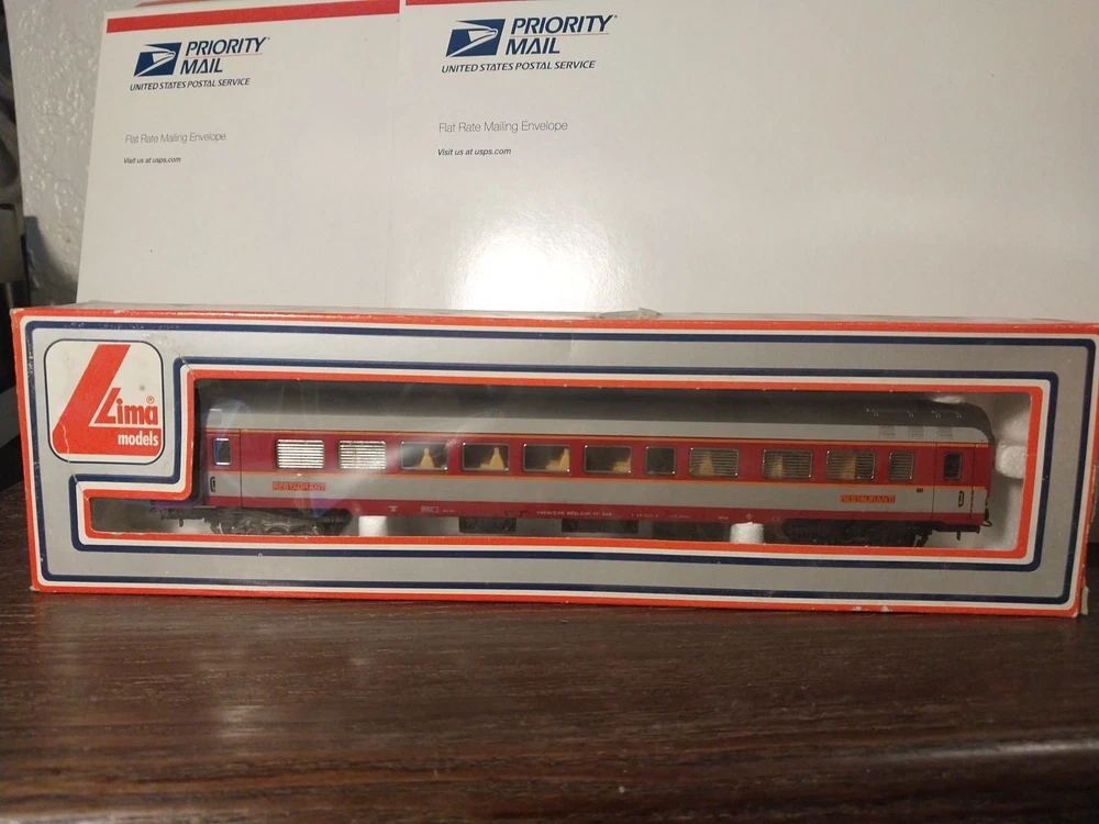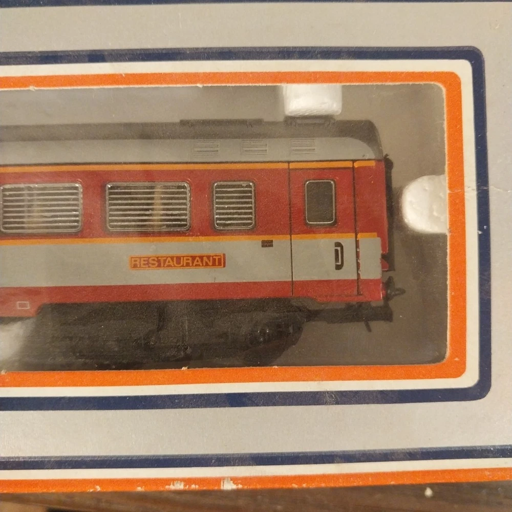 The Lima Passenger Restaurant Car, model number 309203, is a vintage HO gauge dining car designed for model railroads. This pre-built plastic car features a multicolor design with a theme centered around food and drink. Manufactured in Italy, this dining car is a great addition to any model railroad enthusiast's collection, offering a touch of authenticity and nostalgia to train layouts.