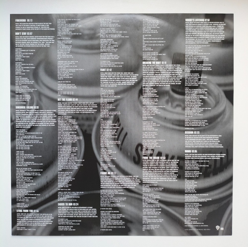LINKIN PARK - METEORAHere is for sale a double Lp from the American alternative band LINKIN PARK!!! The year of release is 2003 from the label WARNER BROS RECORDS. Excellent condition. Sleeve have some signs of the age. Stunning totally MINT records. Sleeve is close to Very Good++ with the original inner lyric sleeve. I can't imagine myself that i sell this copy . Hard to ever replace in this condition. TRACKLISTA1 ForewordA2 Don't StayA3 Somewhere I BelongA4 Lying From YouB1 Hit The FloorB2 Easier To RunB3 FaintC1 Figure.09C2 Breaking The HabitC3 From The InsideD1 Nobody's ListeningD2 SessionD3 Numb VINYL CONDITION : MINT SLEEVE CONDITION : VERY GOOD++ Shipping and Payment Terms Accepted Payment Methods: PayPal , Bank Transfer , Other is welcome POSTAGE IS :* 1 - 2 CD'S OR 7" SINGLE IS 9 POUNDS WORLDWIDE* 1 - 2 LP'S IS 19 POUNDS WORLDWIDE (FOR MORE THAN 3 LPs ASK ME)* REGISTER AND TRACKING COSTS 7 POUNDS NO MATTER HOW BIG AN ORDER IS AND IS REQUIRED FOR BIG ORDERS OR EXPENSIVE ITEMS !* I COMBINE SHIPPING COST SO BID WITH CONFIDENCE AND SAVE BY GETTING MORE ITEMS !* PLEASE WAIT FOR THE INVOICE ,SHIPPING COST IS DIFFERNET TO EACH CONTINET.