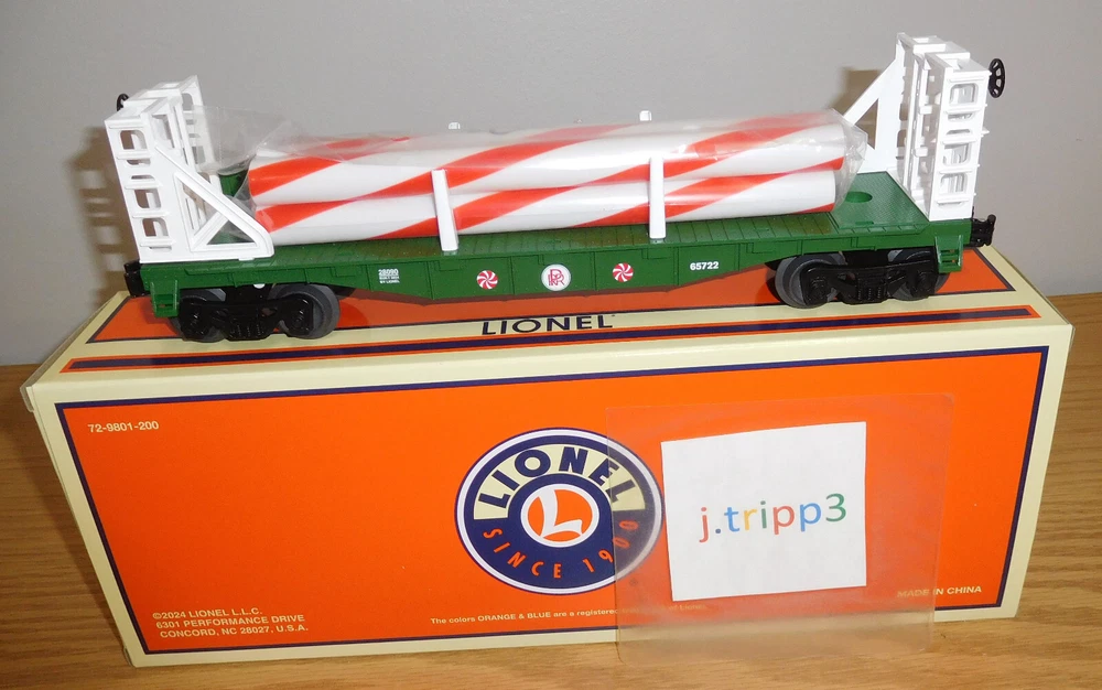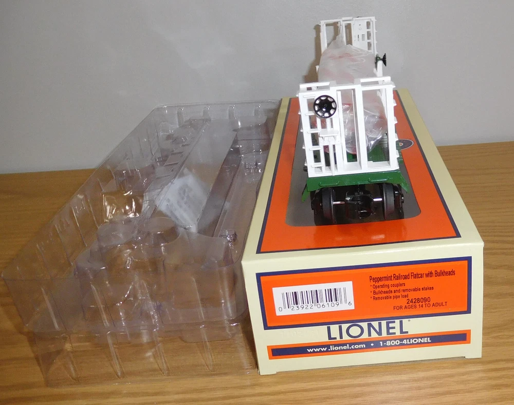 LIONEL Lionel 2428090 Christmas Peppermint Railroad Transport Flat Car with Bulkheads O Gauge which features: Grow your Christmas consist with this festive Peppermint Railroad Transport Bulkhead Flatcar! Operating couplers Bulkheads and removable stakes Removable pipe load PRODUCT SPECIFICATIONS Gauge: O Gauge Power: Electric Min Curve: O27 Dimensions: Length: 11" Brand-New with Original Box SHIPPING: & Insurance will be a flat rate or Actual cost (shown above) to your location for UPS or USPS service in the lower 48 U.S. States. Alaska, Hawaii, US territories, & APO addresses will require an additional cost. Please wait for an invoice reflecting this. International Shipping will be sent through the eBay Global Shipping Program due to the simplicity of the program. Tracking information will be added to the auction listing once payment is received and a label is created for the shipment. COMBINE SHIPPING: If multiple auctions are won, items will be combined whenever possible to save you money on shipping expense. NOTE: Some items can’t be combined and will be documented in the item description. PLEASE WAIT for a combine item purchased invoice before sending payment. Once payment is made, the auctions are considered closed and will ship within 24hrs (or next business day) in accordance to eBay shipping policy. Because of this, we can’t hold paid items to ship together. PHOTOS: Shown are actual items of product for sale. View pictures as part of the item description. PAYMENT: must be received within 5-days of the end of auction. If payment is not received within 5-days, a non-paying bidder alert will be filed with eBay and non-payment also results in a block of future bidding with us. RETURNS: Due to eBay requiring a 30-day return policy, we now charge a 20% re-stocking fee on any sealed items that have been opened and on listed items as ‘NEW’ that have been opened and used. Ask questions, know and understand the product(s) being purchased. If there is something wrong with your purchase or the item was received damaged, please contact us through eBay messaging before opening up a return request through eBay. Most issues can be rectified through a conversation. We are a family owned business trying to make a living. Mistakes & Errors do happen even though we try very hard to prevent it. Our descriptions are a reflection of this regarding the details we give about an item. FEEDBACK: We encourage you to leave ‘’Positive Feedback” once the transaction has been completed and you received the item. We always leave Positive Feedback, once it is left, informs us that you received your purchase and are satisfied. If you have a problem with what was received, please contact us through eBay messaging so we can rectify the issue.