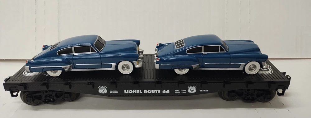 New unused train car; Box has light wear & some small stains-Will ship Quickly from NY in padded oversize box.All of our offers are Guaranteed 100%....................This Lionel flat car is a great addition to any model train collection. It features a sleek black design and is made of durable plastic material. The car is pre-built and ready to go, making it perfect for those who want to add some realism to their layout. The car is part of the Lionel brand, known for its high-quality model train products. It is designed for use on O gauge tracks and has a vintage look that will complement any train enthusiast's collection. This flat car is perfect for transporting small items or adding to a freight car collection. Overall, this Lionel flat car is a great buy for anyone looking to add some realism to their model train layout.