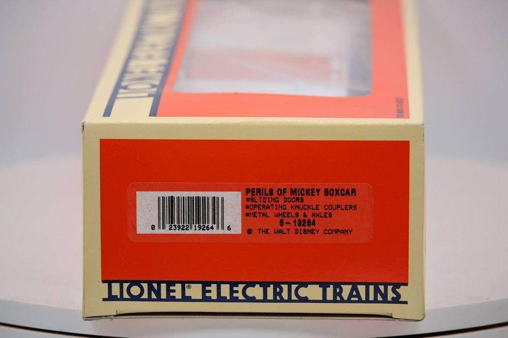 LIONEL 6-19264 DISNEY " PERILS OF MICKEY BOX CAR " LOT # 22589 Look closely at the pictures to see further details. We ships USPS PLEASE see photos for detailed condition!! PLEASE LOOK AT THE PHOTOS CAREFULLY BEFORE PURCHASING!! If you are purchasing more than one item from us and would like combined shipping, PLEASE request an adjusted invoice from us while still in the cart and BEFORE paying. eBay does not usually calculate combined shipping accurately and you might get overcharged. Please be aware that when we photograph items, we use lighting that will show the details well. Although we try to present the product as accurately as possible, the lighting may affect the overall look of the item by appearing lighter/darker or possibly a different hue than the actual item. Depending on the type of lighting you have in your home, there may be some differences between the photos and the actual item. If this is a concern of yours, please feel free to request additional photos made in natural lighting or ask for a more detailed description of the item PRIOR TO PURCHASE! PLEASE NOTE: We greatly appreciate your interest in our item for sale. We look forward to a pleasant, quick and satisfying transaction for everybody, so please note the following information before bidding. Thank you! ITEM DESCRIPTIONS: * We will try to describe items well and provide plenty of photos. Please review these carefully before bidding or purchasing. * Only the items pictured and described are what you will receive when purchased. * We will occasionally offer an item clearly marked "AS-IS". This means that we are not sure if it works because we are unable to test it for whatever reason. We will offer these at a discounted price then a similar "working" item. It is possible that these items will work fine, but it also is possible that these items are more useful for their parts. Please only bid on or purchase these items if you are well aware of this, as we will only provide refunds of actual item price (no shipping cost refunds) for these items. * If you have any questions that aren't addressed by the descriptions or photos, please feel free to ask before you bid. * There may be pieces that are missing or broken including, but not limited to, couplers, brake wheels, steps, ladders, railings, minor rust spots or cracks, etc. May need detailed cleaning SHIPPING: * We usually do not offer shipping to international addresses, but ARE WILLING TO TAKE CONSIDERATIONS. * We try to pack items as carefully as possible, but damage may occur during shipping. If you receive an item that was damaged in shipping, please contact us and we will work with you to resolve the problem. * We will combine shipping costs for all items the same buyer purchases from us within 2 days. Please wait to pay for items until you're done shopping with us. Please contact us if you're expecting to buy more items from us, or to have us adjust the shipping costs. * We will usually ship items out within 24 hours of payment being received Sunday through Friday at noon. We will notify the buyer if there will be a delay in shipping for some reason. Please allow additional time for holidays and weekends when the post office is closed. If payment is received after noon (EST) on Friday, the item might not be shipped until the following Monday. * We do try to recycle shipping materials as much as possible. RETURNS: We abide by eBay's Money Back Guarantee. We definitely want our customers to be happy with their purchase! You may return an item within 30 days of receiving it with the following guidelines: * If the item is defective or damaged (unless we clearly marked the listing "AS-IS"), the buyer will receive a full refund after the buyer returns it and it is received by us. Customers who falsely claim their item is defective, damaged, or not as described in order to receive a full refund and free return shipping will be permanently blocked from making future purchases from us. * If the item is as described (including "AS-IS" items) and the buyer decides for any other reason than defective/damaged to return it, only the actual price of the item will be refunded once it has been returned and it is received by us. The buyer will be asked to pay all original and return shipping charges. This includes all reasons other than defective/damaged, including wrong size, wrong type, changed mind, etc. All "AS-IS" items will fall into this category of return. Please make sure the item is what you want before purchasing it. * Please contact us before initiating a refund request. FEEDBACK: We always leave feedback at the end of transaction. We consider the transaction to be over when we receive feedback from the buyer confirming the item arrived satisfactorily. If you are unsatisfied with your purchase please contact us before leaving neutral or negative feedback. WE APPRECIATE POSITIVE FEEDBACK IF YOU ARE SATISFIED WITH YOUR PURCHASE! THANK YOU FOR YOUR INTEREST IN THIS ITEM!