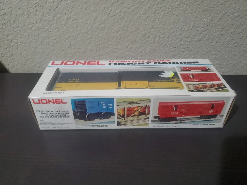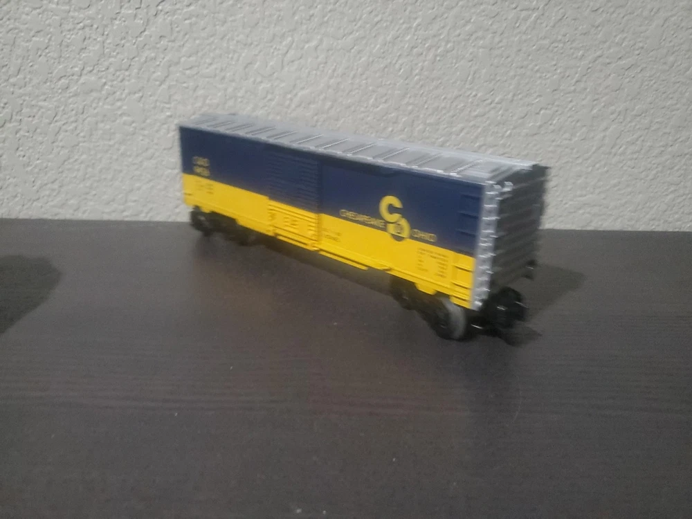 This is a Lionel O gauge Chesapeake & Ohio boxcar model 6-9426. It is a multicolor plastic model from the 1980s, featuring operating couplers and sliding doors that increase the car's play value. The boxcar is compatible with any 3-rail O gauge track brand, making it a perfect addition to O gauge layouts and collections alike.