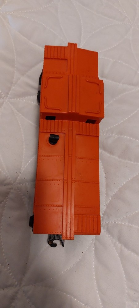 The Lionel Lines O/027 Square Window 9058 Unlighted Orange Caboose from 1989 is a rare vintage train car perfect for collectors and enthusiasts. Made of plastic and featuring a distinctive orange color, this caboose is designed for 3-rail O scale model railroads. With its not painted features and recommended age range of 8 years and up, this toy is suitable for both boys and girls who enjoy playing with trains. The vintage design and brand of Lionel make this caboose a valuable addition to any model railroads and trains collection.