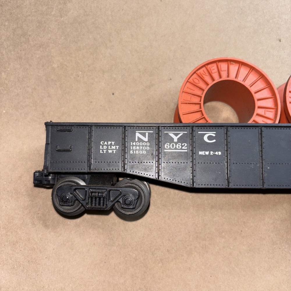 HomeLIONEL O Gauge New York Central Black Gondola Car with Cable Reels