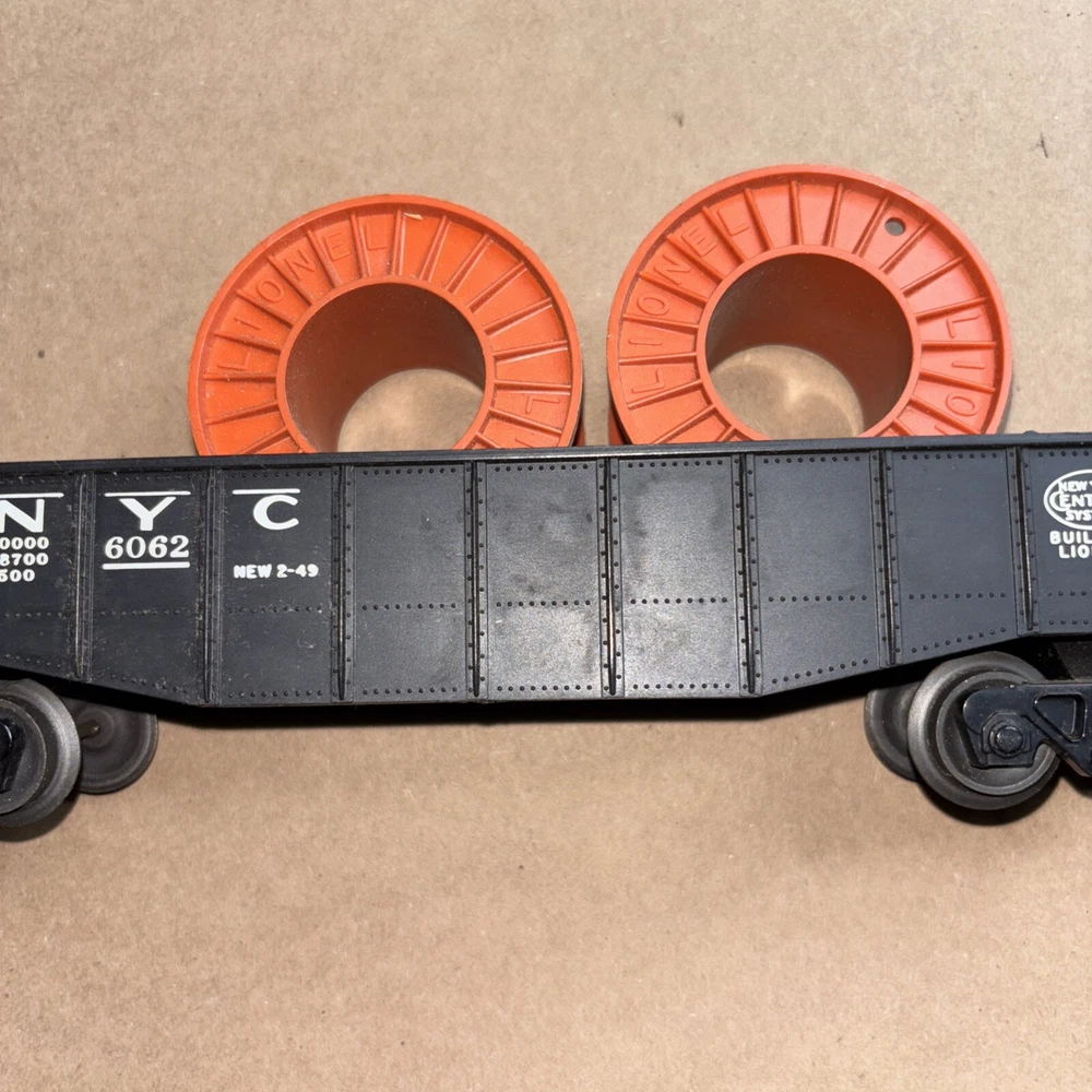 LIONEL O Gauge New York Central Black Gondola Car with Cable Reels
