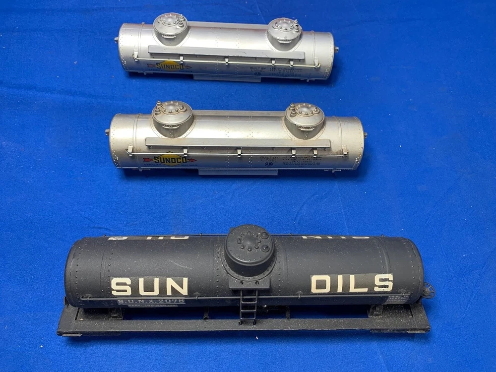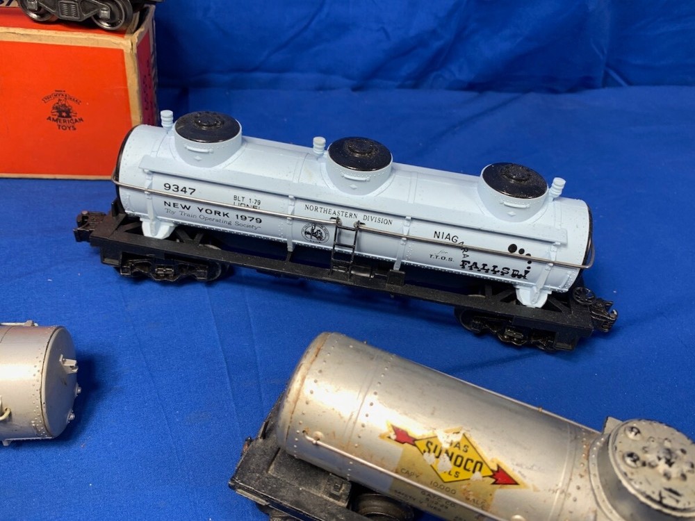 VINTAGE LIONEL O-27 SCALE O-GAUGE TRAIN PRE WAR & POST WAR TANK CAR LOT - FREE SHIPPING NOTE: THESE HAVE BEEN STORED FOR 20+ YEARS NOTE: THERE ARE TEN (10) TANK CARS IN VARIOUS STAGES OF COMPLETENESS & CONDITIONS NOTE: ALL ARE UNTESTED THE PHOTOS DISPLAY THE TANK CARS THAT YOU WILL RECEIVE THESE COME FROM AN ESTATE THAT WE ARE CURRENTLY LIQUIDATING - TDC-2 WE ARE NOT LIONEL EXPERTS AND WILL LET THE OVERSIZED PHOTOS SPEAK FOR THEMSELVES OVERALL CONDITION IS MUCH BETTER THAN FAIR SHIPPING - WE SHIP WORLDWIDE ITEM(S) WILL BE PROFESSIONALLY PACKAGED CAREFULLY AND SECURELY WE OFFER FREE INSURANCE & TRACKING WITH BUY NOW PAYMENT - VARIOUS PAYMENT OPTIONS AVAILABLE VISA - MASTERCARD - AMERICAN EXPRESS - DISCOVER - PAYPAL - CHECK FEEDBACK - WE LEAVE FEEDBACK FOR ALL TRANSACTIONS AS THE SELLER, AS SOON AS YOUR PAYMENT ARRIVES, WE LEAVE POSITIVE FEEDBACK AS THE BUYER, PLEASE LEAVE POSITIVE FEEDBACK THE DAY THAT YOU RECEIVE YOUR WELL PACKAGED ITEM(S)