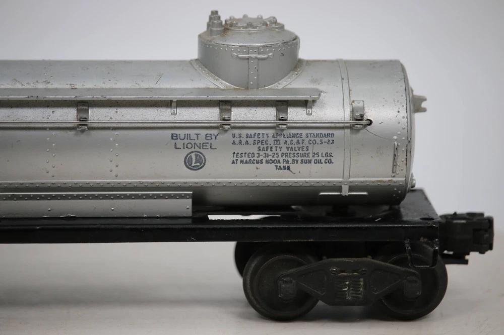 LIONEL POSTWAR 6465 SUNOCO DOUBLE DOME TANK CAR O GAUGE SKU#009792 PLEASE READ BEFORE PURCHASING Condition: Please review all photos carefully for details on the item's condition. Photos are part of the description, and any notable flaws will be highlighted. Combined Shipping: If purchasing multiple items, request a revised invoice before paying to ensure accurate combined shipping costs. eBay's system may not calculate this correctly, leading to overcharges. Lighting Disclaimer: Photos are taken under bright lighting to highlight details, which may cause slight variations in color or hue depending on your lighting. If you need additional photos (e.g., in natural light) or more details, please ask before purchasing. As-Is Items: Items come AS-IS. The way they appear in our pictures is how the Item will arrive to you. What's Included: Only the items shown in the photos and described in the listing are included in the purchase. We strive to describe items thoroughly and provide clear photos. If you have any questions or concerns not addressed in the listing, feel free to ask before purchasing. Thank you for shopping with us!