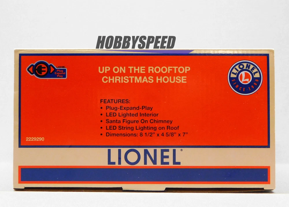 Lionel: 2229290 Lionel Up on the Rooftop Christmas House Grow your Christmas layout with this Up On The Rooftop Christmas House! O Gauge Features: Plug-Expand-Play LED Lighted Interior Santa /Figure for on Chimney LED String Lights around roof PRODUCT SPECIFICATIONS: Gauge: O Gauge Dimensions: 8 1/2" x 4 5/8" x 7" Brand new in the Lionel box!!! Check out our eBay Store for more NEW Lionel, MTH, Bachmann, Atlas and more. We combine shipping on multiple items!! Insurance is Included in S&H Price Please wait for our invoice before payment is sent. We offer discount shipping on multiple items but can ONLY combine shipping if you wait until you are done bidding and receive our final invoice to pay. All items must be paid within 7 days. For Great Customer Service click the "Contact" link just below our description! Shipping price is for Domestic USA only. Hawaii, Alaska, APO's, and Puerto Rico may incur additional S&H International: We Ship Worldwide HOBBYSPEED Value Added Authorized Lionel Dealer INDIANA, PA UNITED STATES OF AMERICA