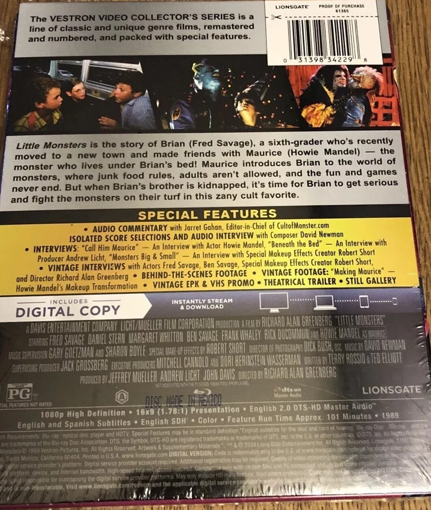 Experience the horror and laughter of "Little Monsters" (1989) with this Blu-Ray Steelbook edition. This sealed movie comes with English and Spanish subtitles, making it accessible to a wider audience. Directed by David Cronenberg and starring Fred Savage, this PG-rated movie is a must-watch for horror enthusiasts. This Steelbook edition features a commentary track, adding more depth to your viewing experience. Compatible with Blu-Ray region code A (Americas, Southeast Asia...), this movie is perfect for collectors and fans alike. Don't miss out on adding this gem to your collection and enjoy the same-day shipping.