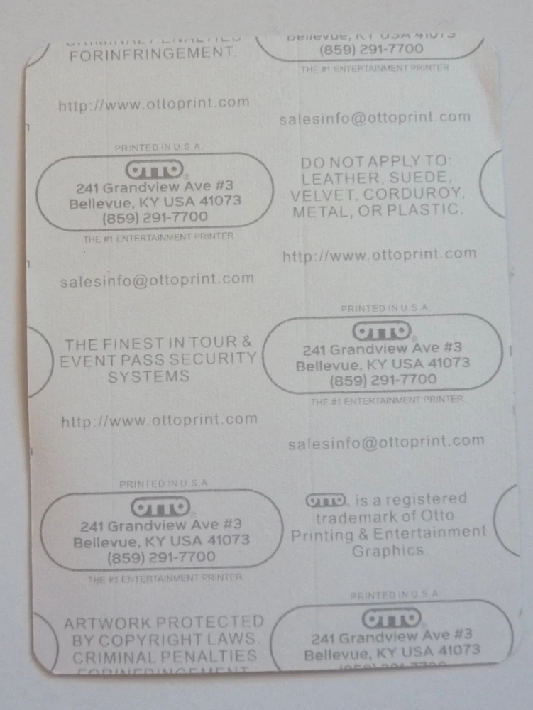 This listing is for a single backstage pass as shown and described above...Both sides are shown..These came in a large collection of passes from the owner of Otto Passes, David Otto...Otto Passes have been a go to name for artist for more than 40 years.. Please see the attached photo(s) and e-mail me with any questions prior to purchase...Stated shipping is inside the Continental USA. PLEASE NOTE....WE SHIP ON TUESDAYS AND FRIDAYS!!!