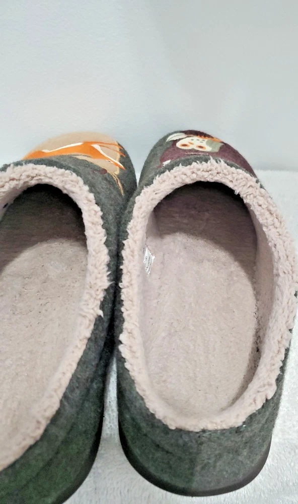 The L.L. Bean Daybreak Scuffs in size 10 Medium are cozy and comfortable slip-on slippers perfect for travel and casual wear in the winter, fall, and spring seasons. These fleece-lined slippers feature a round toe shape, flat heel under 1 inch, and rubber outsole for traction. The animal print pattern with a wildlife theme, multicolor design, and logo accents add a playful touch to these lined, cushioned, and arch-supportive slippers. Made with wool upper material and faux fur insole, these slippers from the L.L. Bean product line are a stylish and practical choice for women's footwear. Please see all pictures and size before purchasing this item. I also do combined shipping + 10% discount on 4 items or more. All returns must be in same condition as received.
