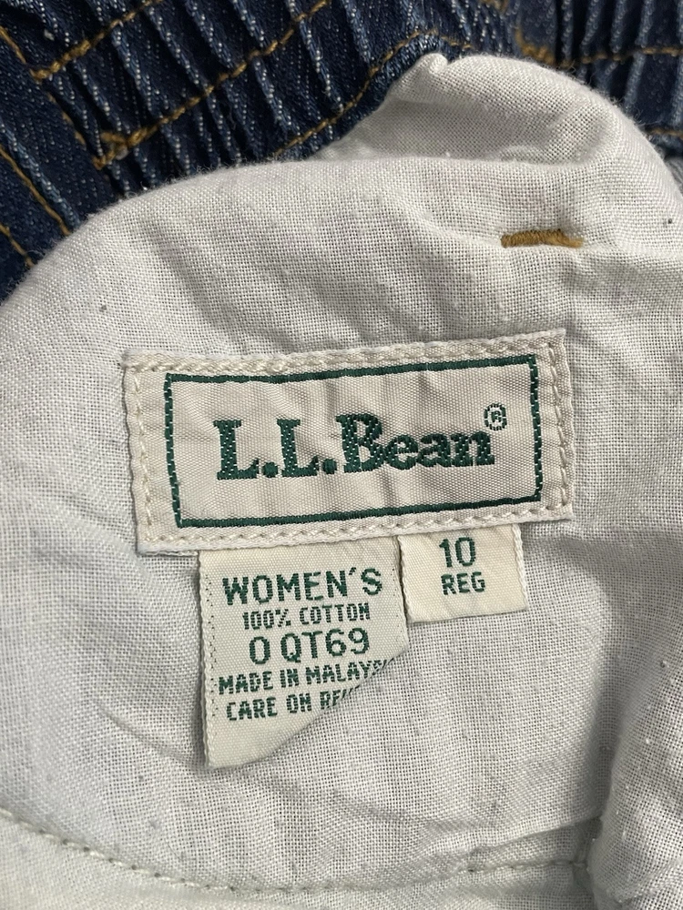Crafted for versatility and timeless style, the L.L. Bean Denim Midi Skirt is a classic addition to any wardrobe. This knee-length A-line skirt in a rich blue hue is a size 10 and fits comfortably with a high-rise waist, ensuring a flattering silhouette for various body types. Its solid denim fabric, washed to a medium tone, offers a relaxed yet put-together look, perfect for casual outings. The skirt features practical elements like pockets for convenience and a slit for ease of movement, blending functionality with fashion. Embodying the spirit of American vintage chic, it's ideal for channeling bohemian, cowboy, '80s, and '90s themes. Made in the United States, this machine-washable garment is a testament to quality and enduring style. elastic panel waist 15" waiat lying flat 19" hips 34" length