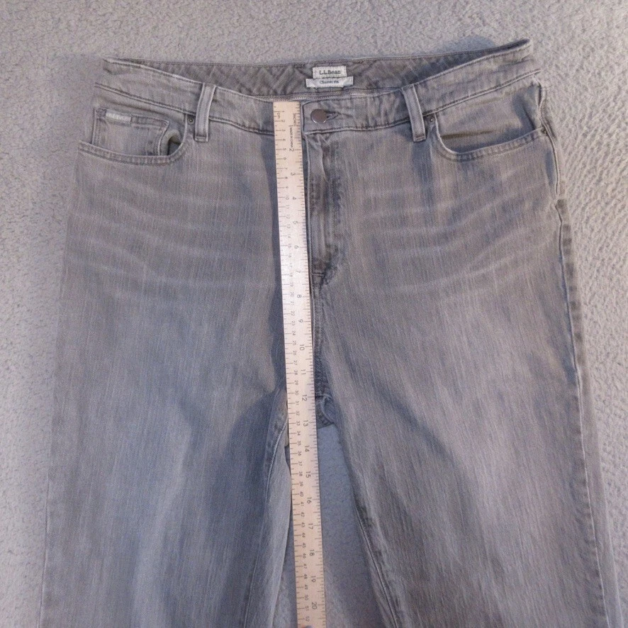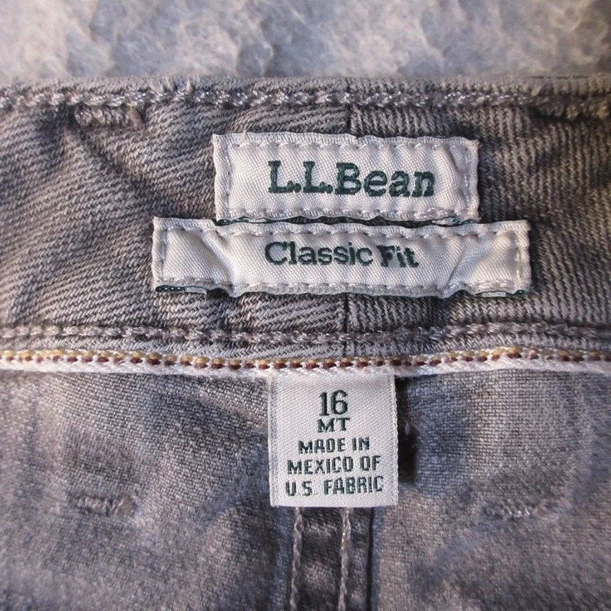 Fit: Classic Fabric Type: Denim Garment Care: Machine Washable Country/Region of Manufacture: Mexico Department: Women Brand: L.L. Bean Pattern: Solid Inseam: 30 in Pocket Type: 5-Pocket Design Size: 16 Season: Fall, Spring, Summer, Winter Features: Stretch Waist Size: 35 in Size Type: Regular Material: Cotton, Spandex Style: Straight Color: Gray Handmade: No Rise: High (Greater than 10.5 in) Closure: Button, Zip Personalize: No Type: Jeans Fabric Wash: Light