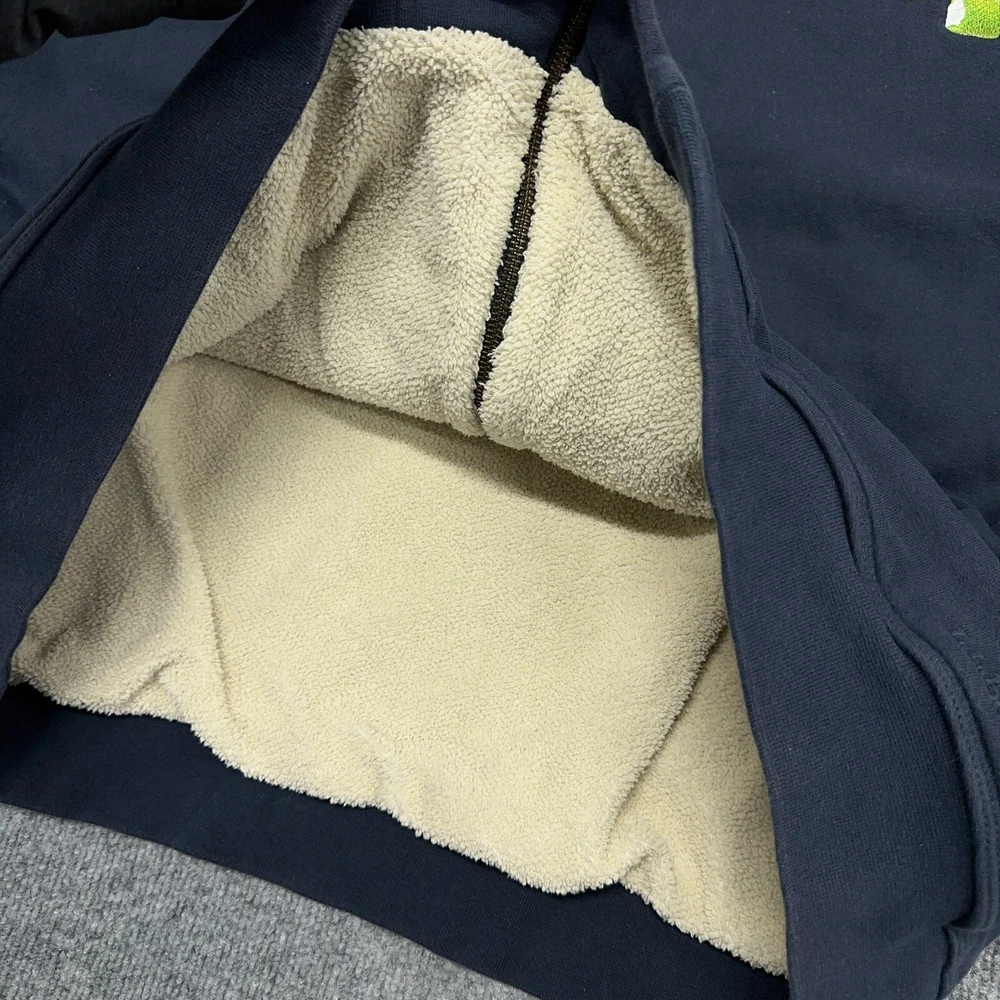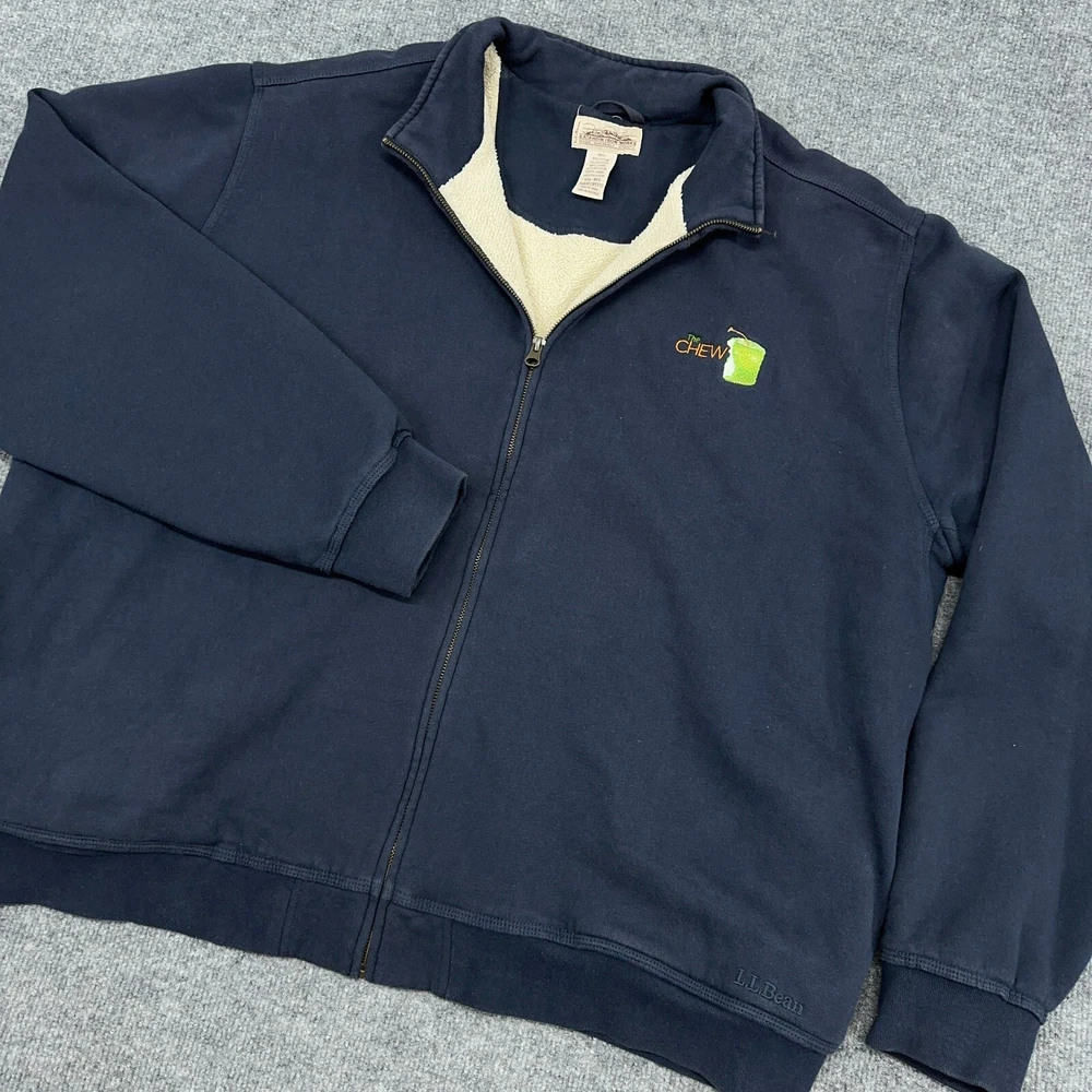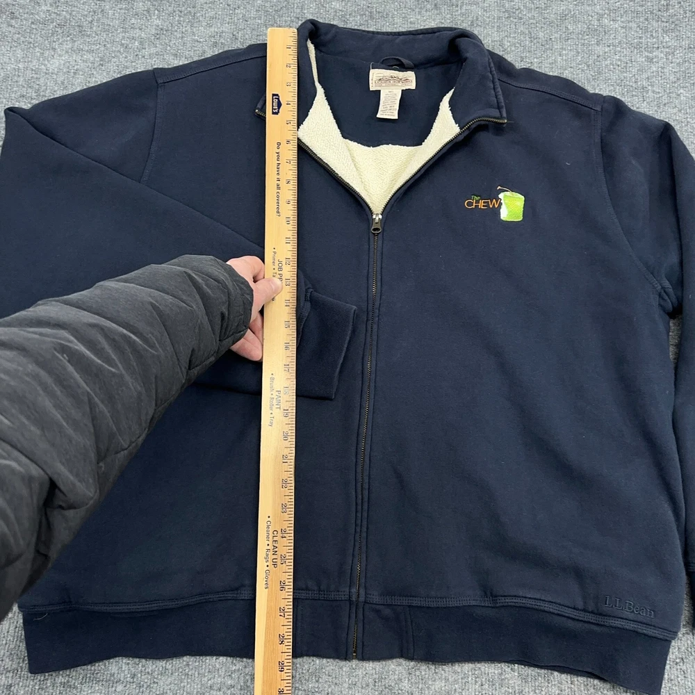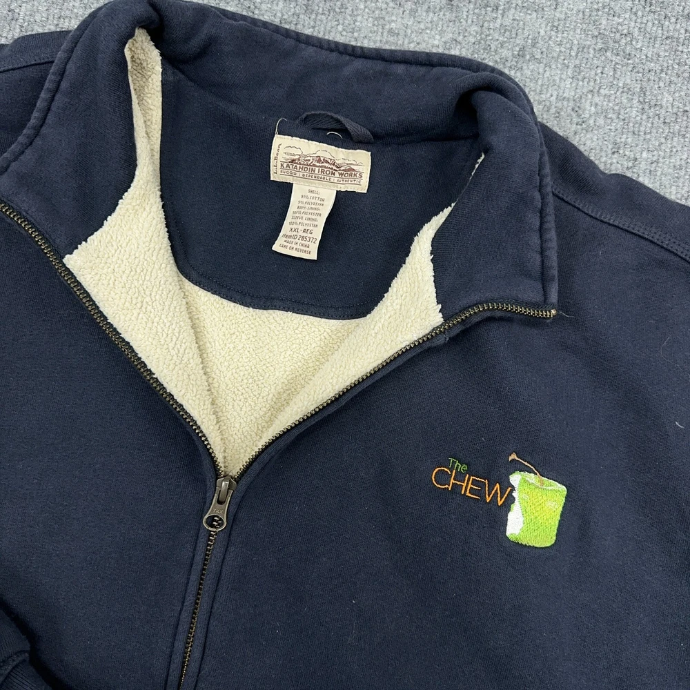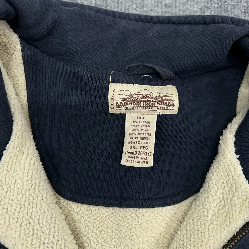 LL Bean Katahdin Iron Works Jacket Men 2XL Navy Sherpa Lined Sweatshirt Full Zip In good condition. Please see photos for measurements. Company logo as shown.