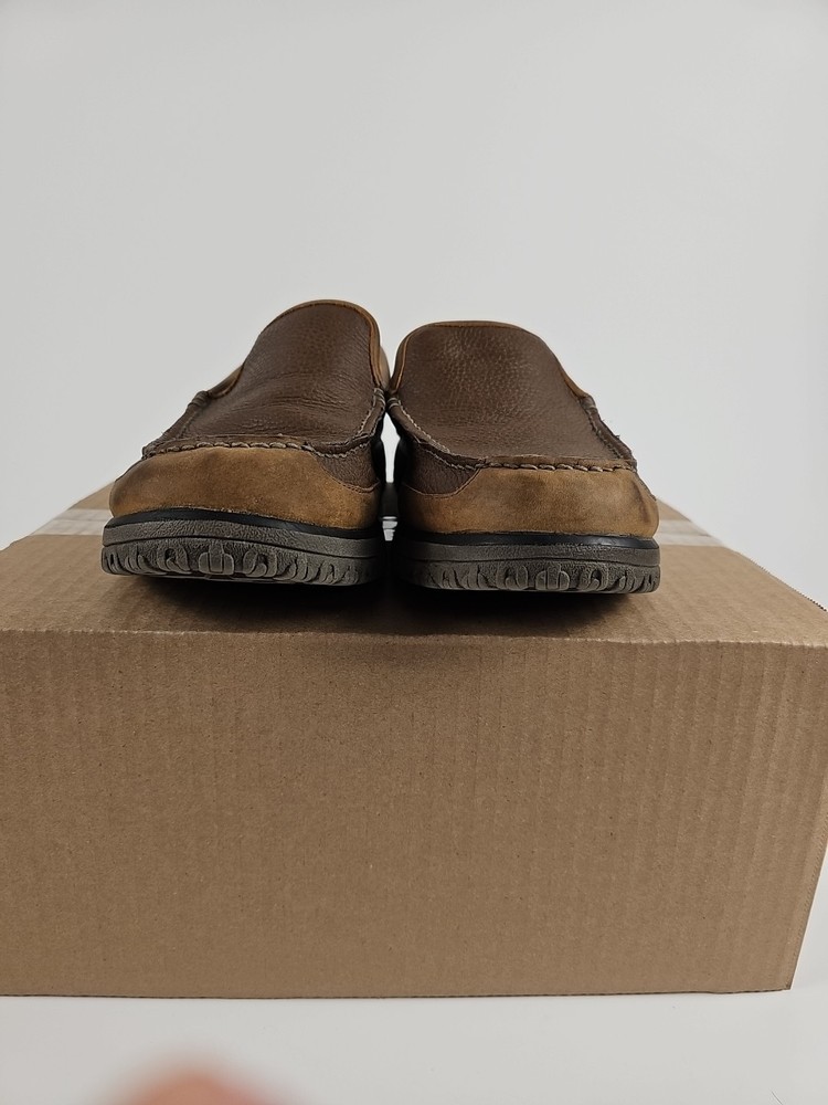 The LL Bean Men's All Week Slipper Mocs in brown leather with shearling lining are a classic and comfortable choice for casual wear. These slip-on moccasins feature a round toe, flat heel, and a lined interior for added warmth during the winter season. With a solid brown color and leather upper material, these slippers are both stylish and durable. Perfect for men looking for a high-quality and timeless footwear option, these LL Bean slipper mocs are a reliable choice for all week wear.