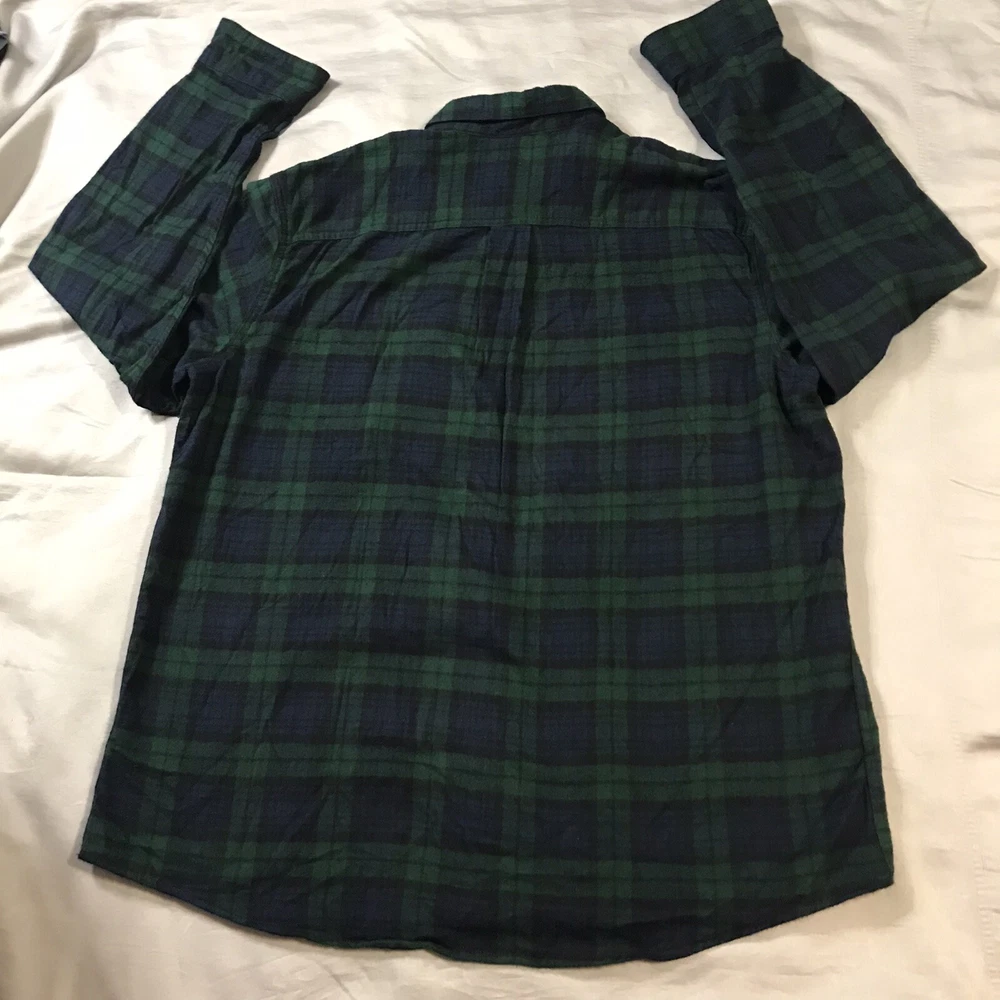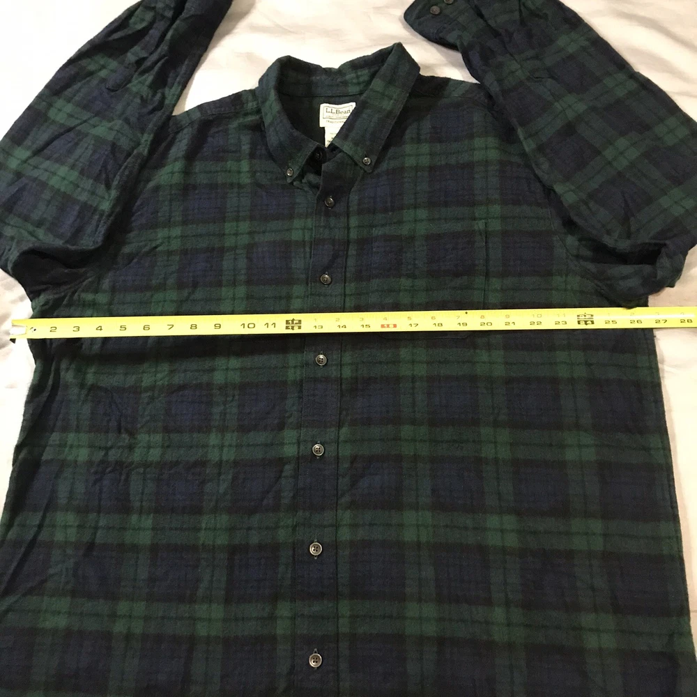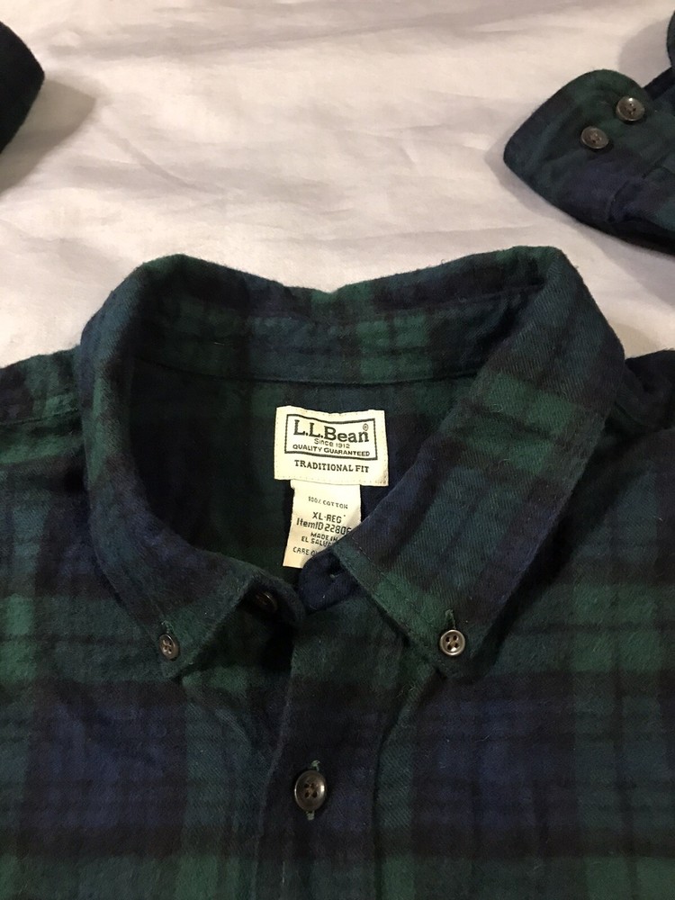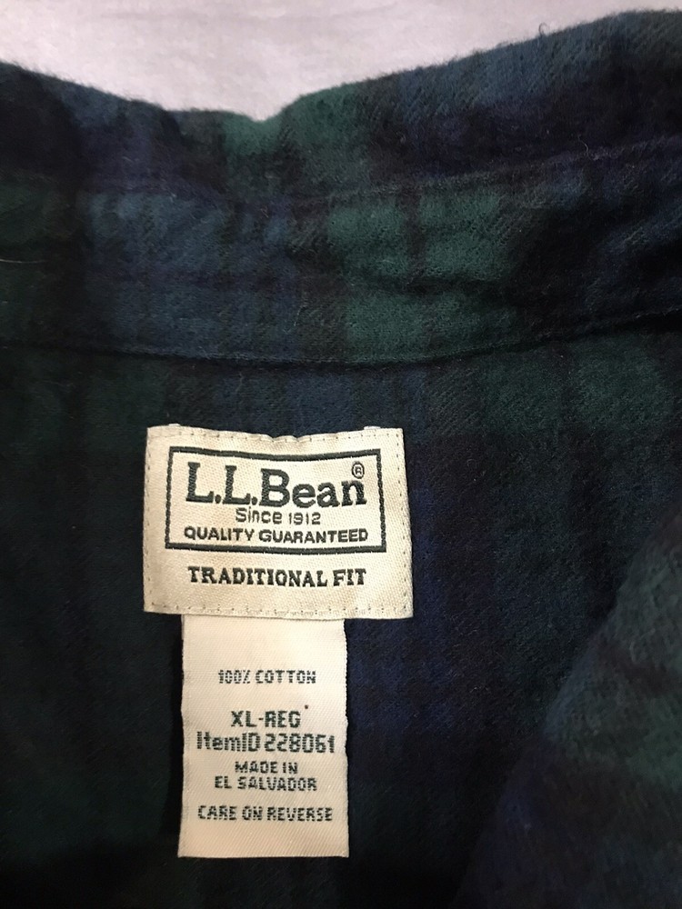 LL Bean Flannel Shirt Mens Extra Large Green Blue Black Plaid Pocket Very good condition!