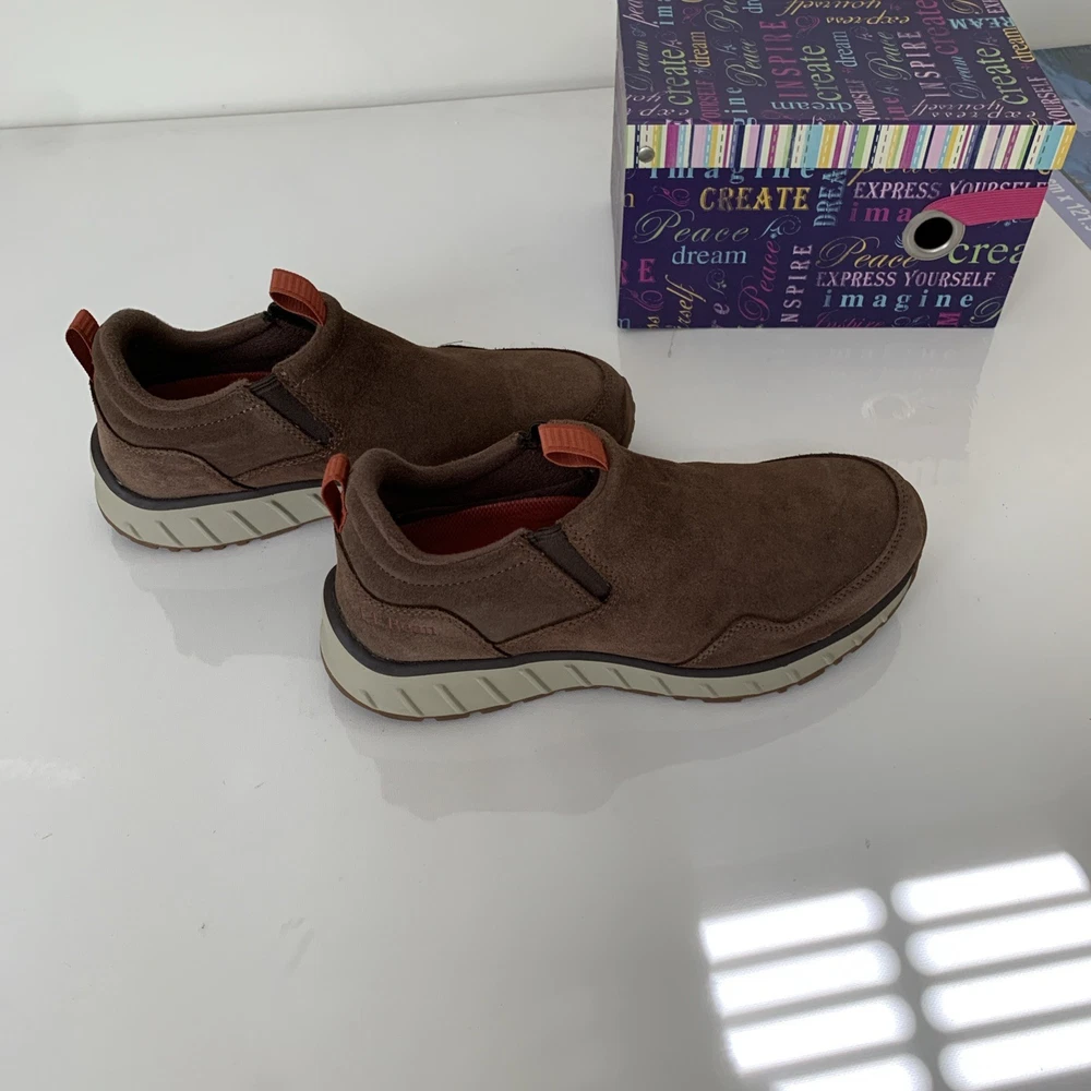 L.L Bean Men’s 7.5 Medium Slip On Comfort Shoes Waterproof Brown Suede Rn#71341