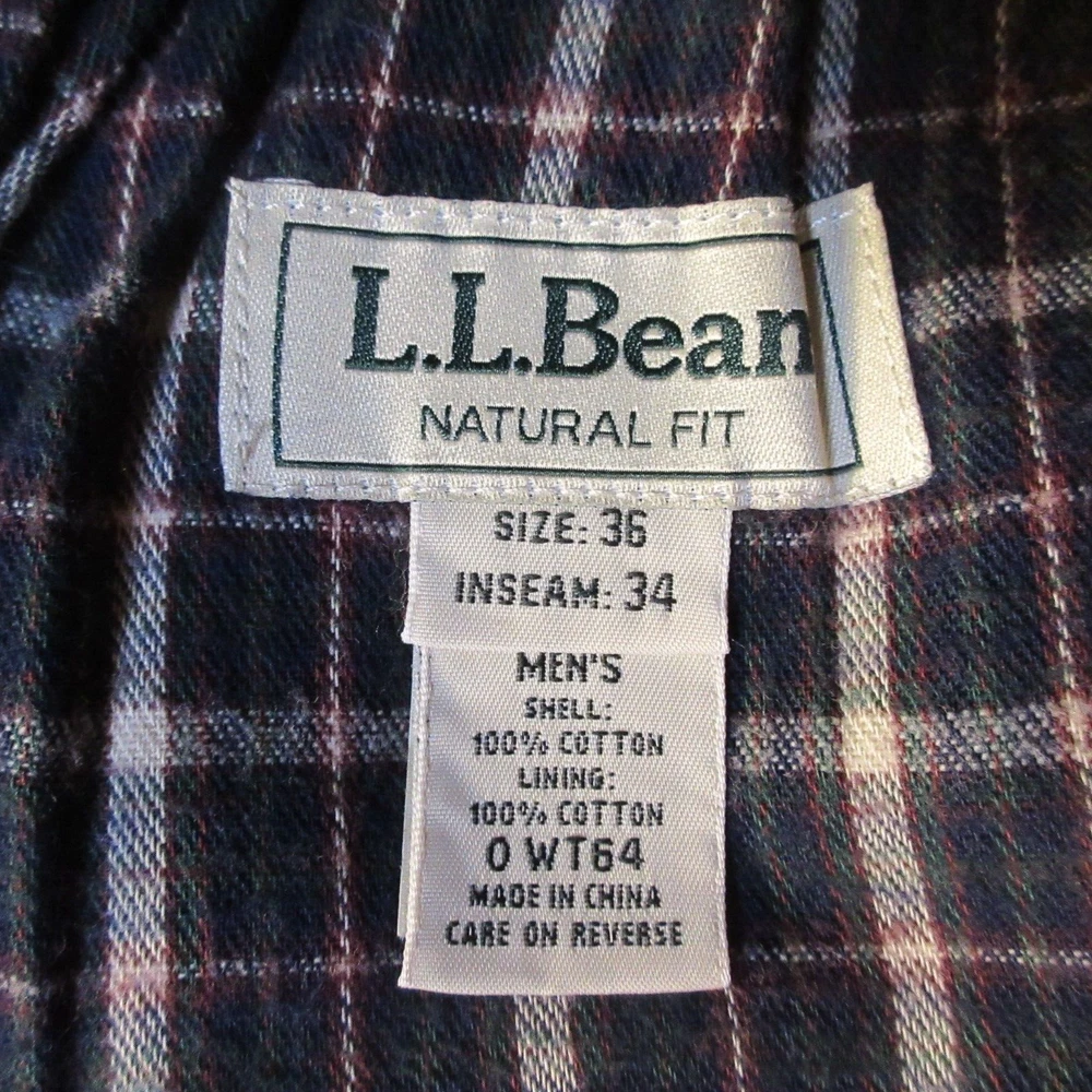 LL Bean Pants 36x34 Mens Natural Fit Flannel Lined Measures 35x34