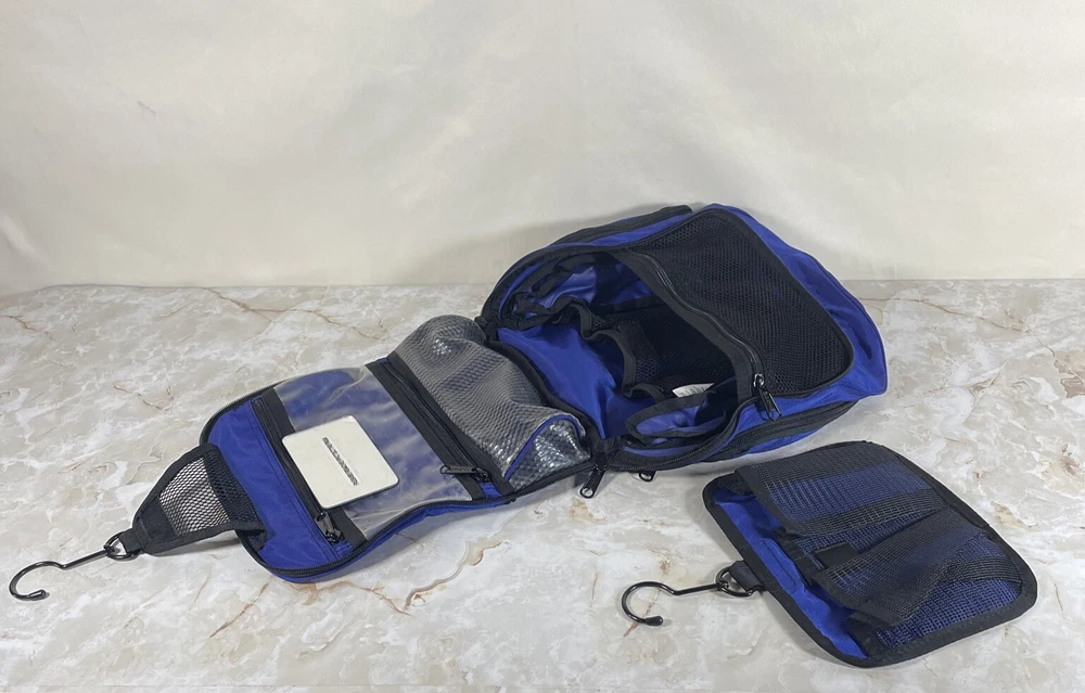 HomeLL Bean Personal Toiletry Organizer Bag Blue Medium Nylon Hanging Travel Kit