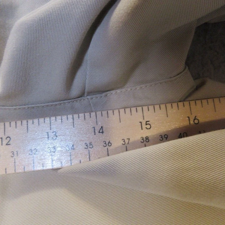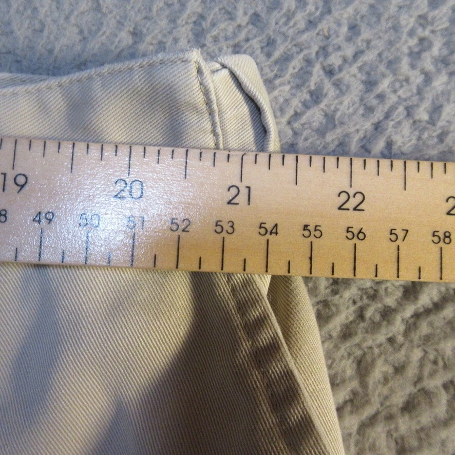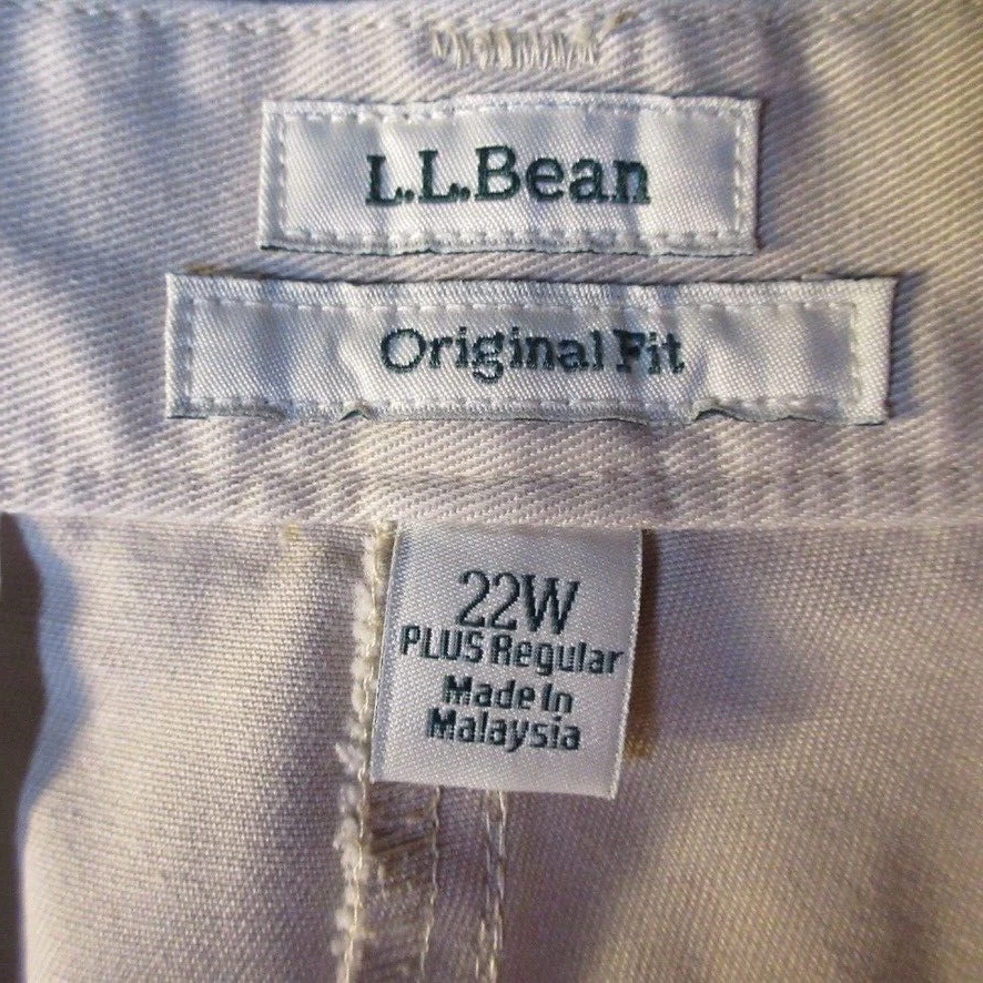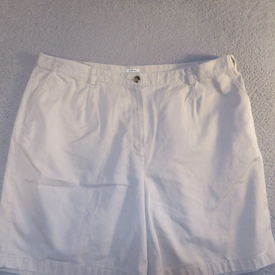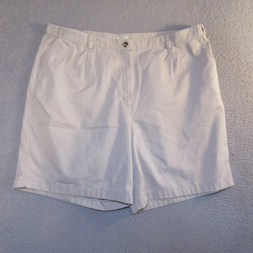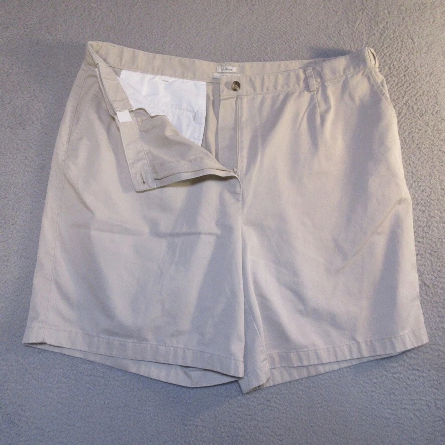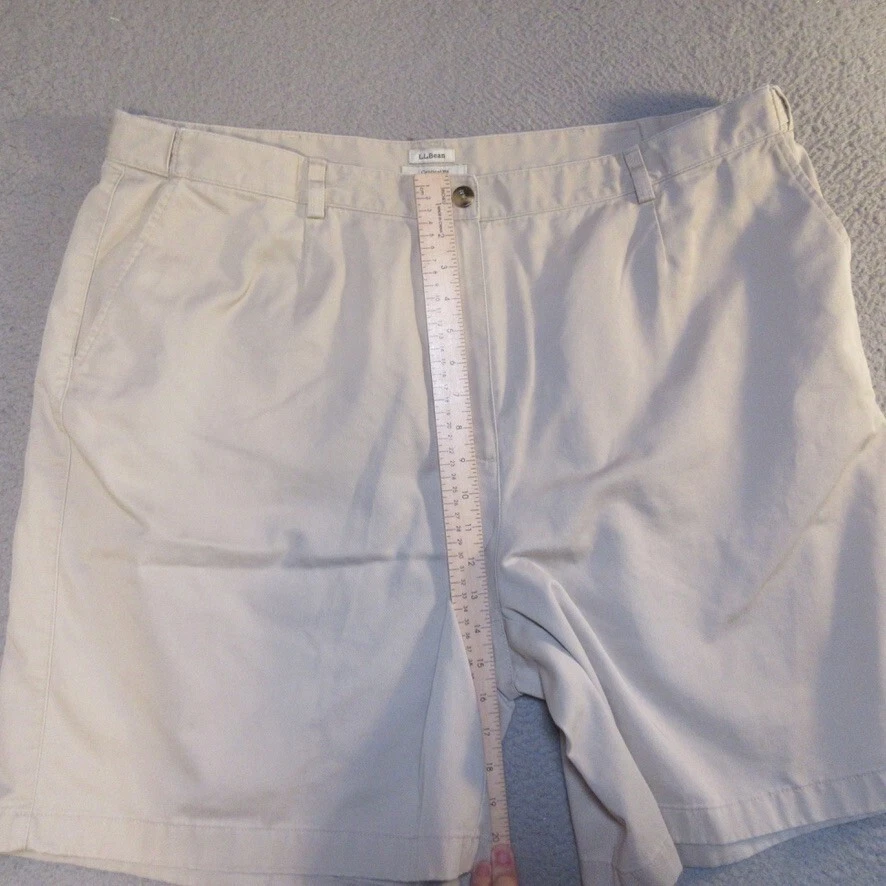 Size:22WHandmade:NoFeatures:ComfortInseam:9 inSize Type:PlusStyle:ChinoPocket Type:Slash PocketGarment Care:Machine WashableVintage:NoBrand:L.L. BeanWaist Size:42 inFabric Wash:MediumMaterial:100% CottonFit:RegularFront Type:Flat FrontOccasion:Casual, TravelCountry/Region of Manufacture:MalaysiaClosure:ZipSeller Notes:“The size tag on these reads 22W, we measure them at 42x9, please see pictures”Season:Spring, SummerRise:High (Greater than 10.5 in)Pattern:SolidDepartment:WomenPersonalize:NoColor:Beige