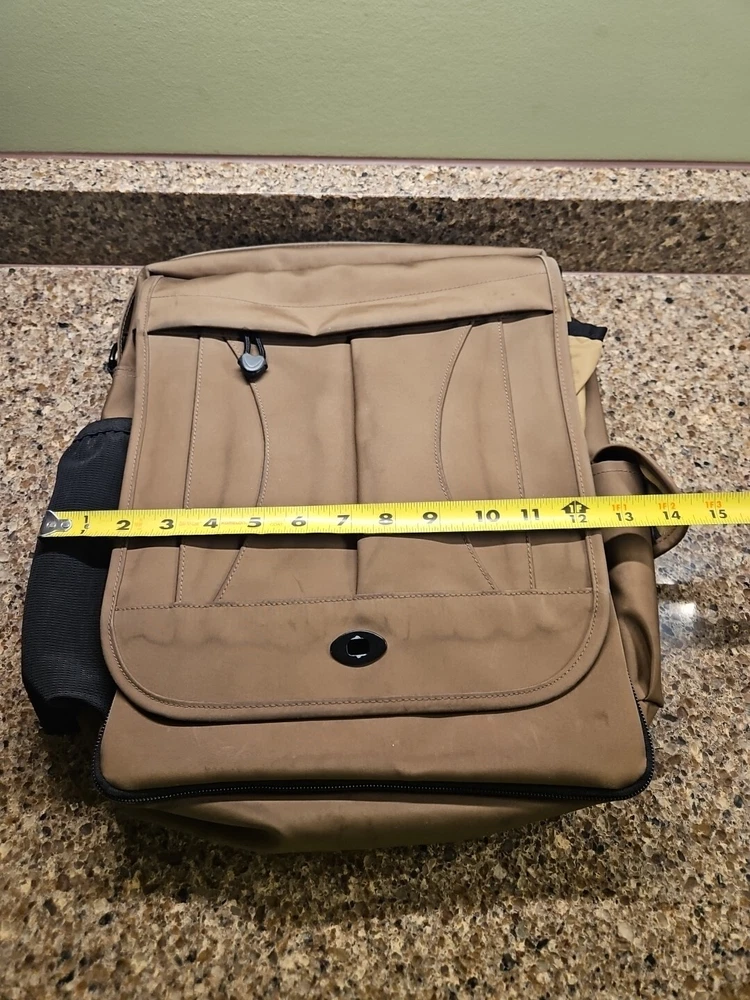 LL Bean Traveler Nylon Messenger Back Pack Travel Bag Khaki Brown