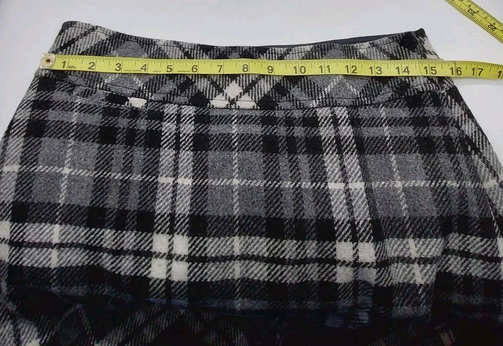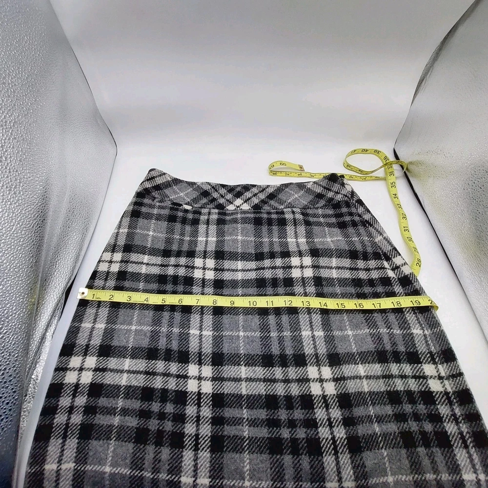 HomeL.L. Bean Women's Favorite Fit Wool Skirt with Back Vent in Black White Plaid Size 8
