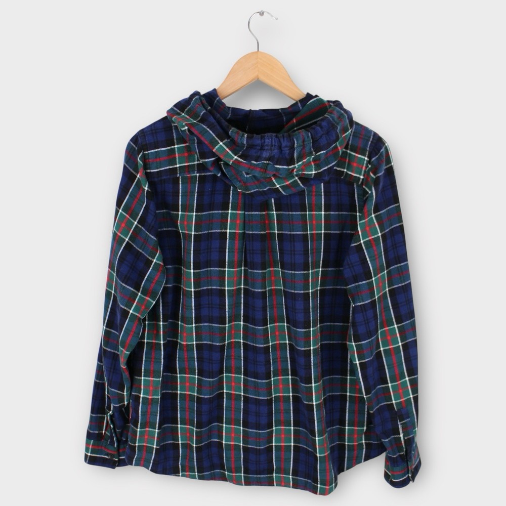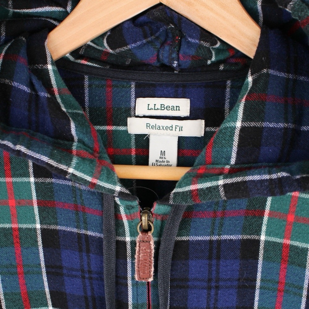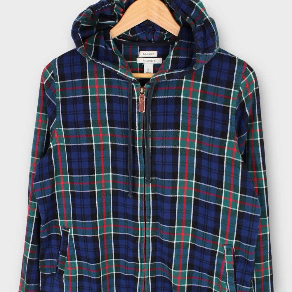 Item: L.L. Bean Men's Hooded Flannel Shirt Jacket Size: Medium (Relaxed Fit) Color: Blue, Green, Red Plaid Material: Brushed flannel (cotton blend) Features: • Full zip front with leather pull tab • Relaxed fit for easy layering • Cozy flannel interior and exterior • Drawstring hood • Dual side hand pockets • Classic plaid pattern Measurements (flat lay): • Chest (pit to pit): 22" • Length (shoulder to hem): 26" • Sleeve (shoulder to cuff): 24" Condition: Pre-owned and in great shape. No stains, holes, or noticeable wear. Perfect for fall or layering in cooler weather.