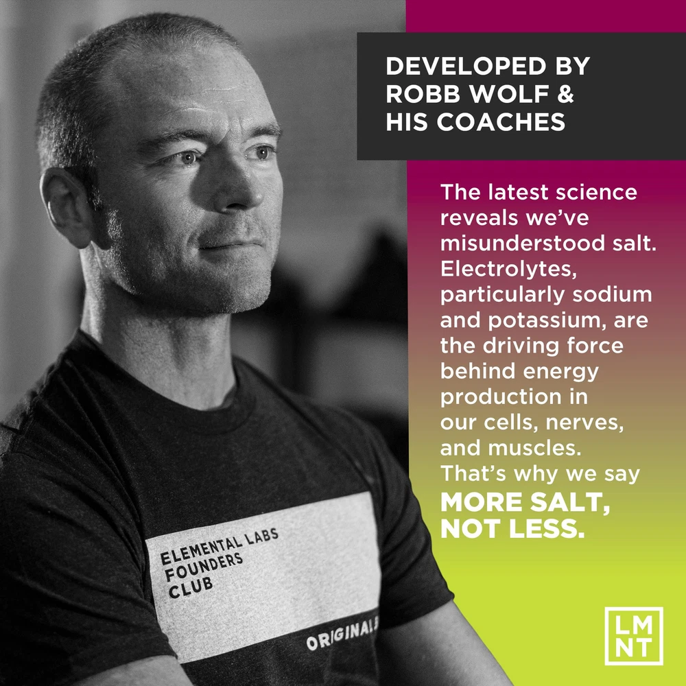 INTRODUCING LMNT SPARKLING ELECTROLYTE WATER: No Sugar. No Caffeine. Nothing Dodgy All Electrolytes — for those who work, for those who train, and for those who simply want to feel and perform at their best. MORE SALT, NOT LESS: A growing body of research reveals that optimal health outcomes occur at sodium levels 2-3x government recommendations. That’s why we say, More Salt, Not Less. OUR FORMULATION: Each can contains 1000 mg sodium, 200 mg potassium, 60 mg magnesium — a truly meaningful serving of electrolytes in a science-backed ratio. The same formulation as LMNT Drink Mix. Now Sparkling. FEEL THE DIFFERENCE: All-day energy starts with optimal hydration. More energy. No brain fog or cramps. You feel the difference when you get it right.